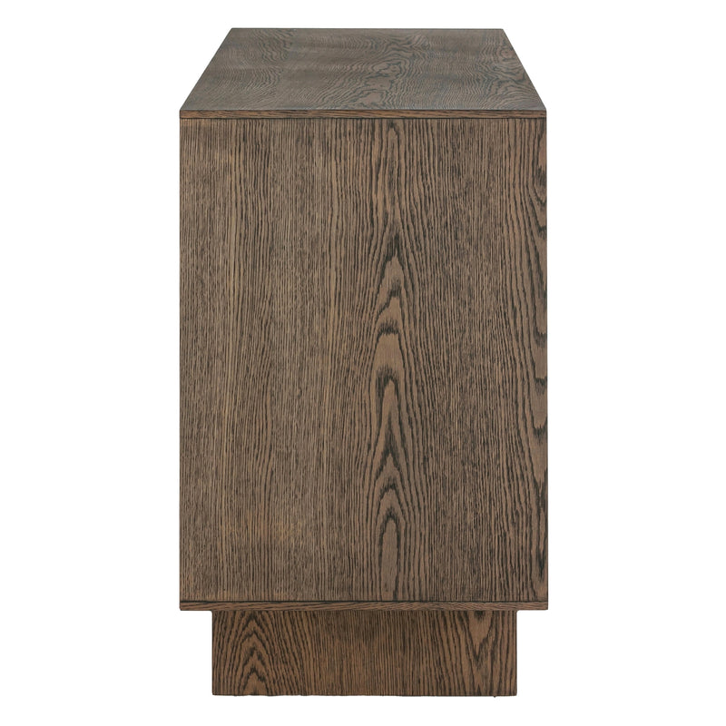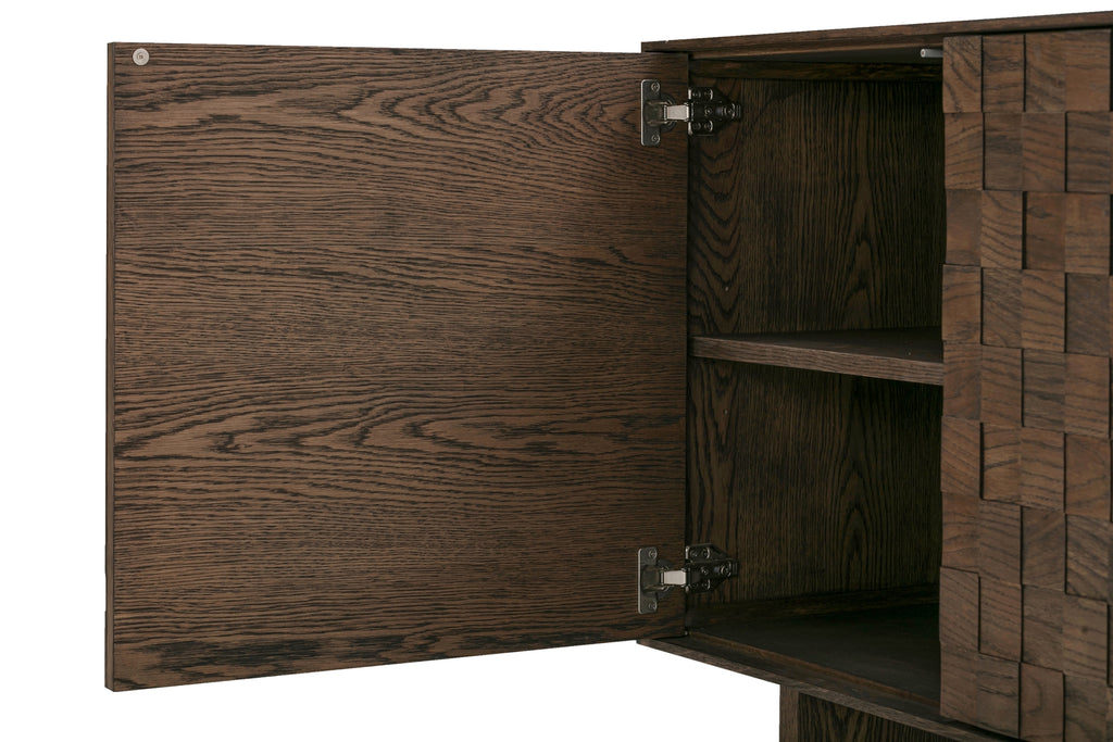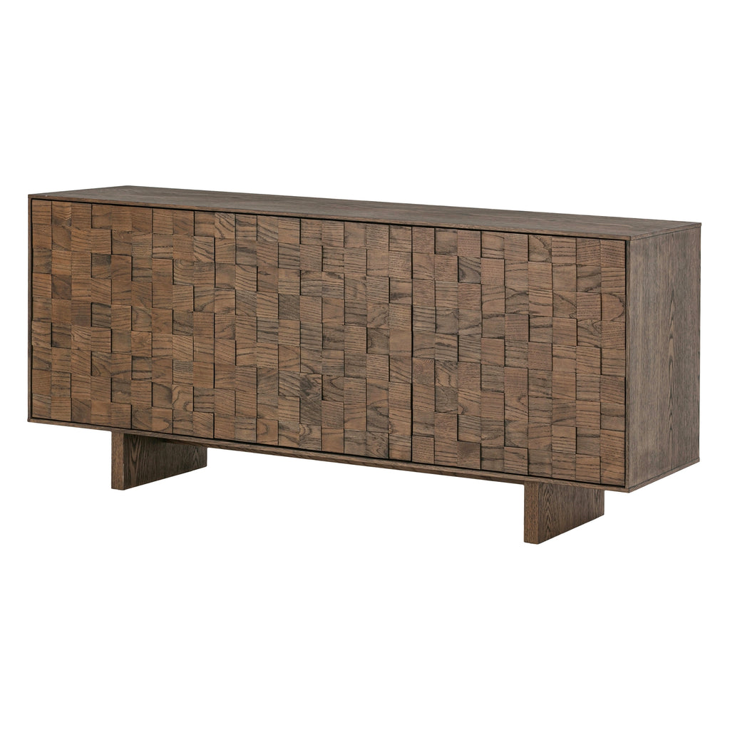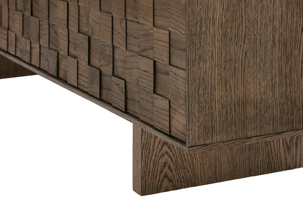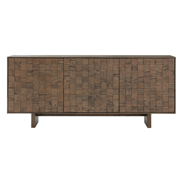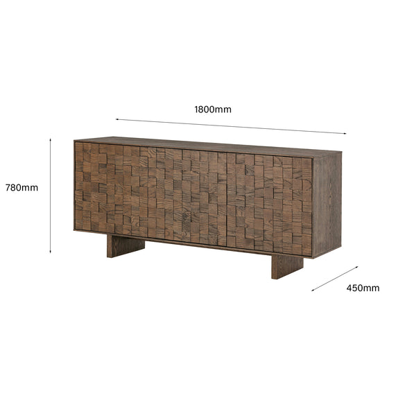The Moretto Sideboard showcases the beauty of solid timber through a rhythmic, textural façade that catches light and shadow across its surface. Each panel is carefully assembled to highlight the grain’s natural variation, creating a subtle sense of movement and craft. Generous storage is hidden behind the sculpted doors, keeping spaces calm and ordered. Both functional and refined, the Moretto Sideboard anchors a room with quiet confidence and timeless character.