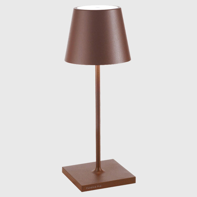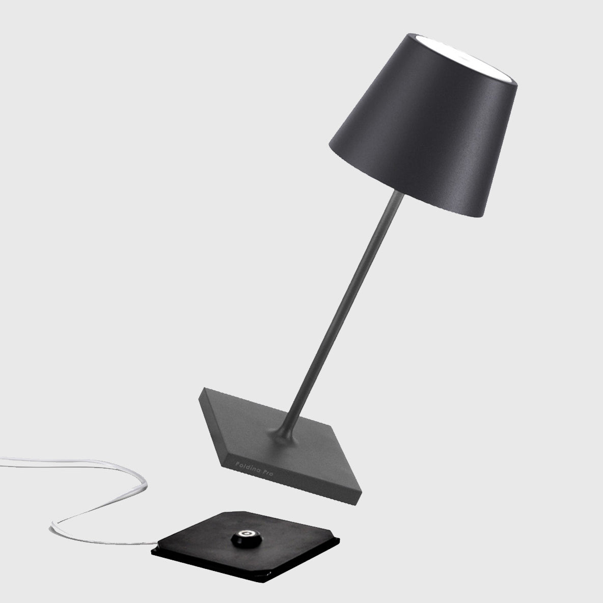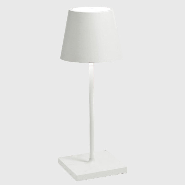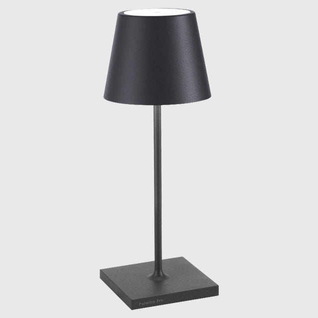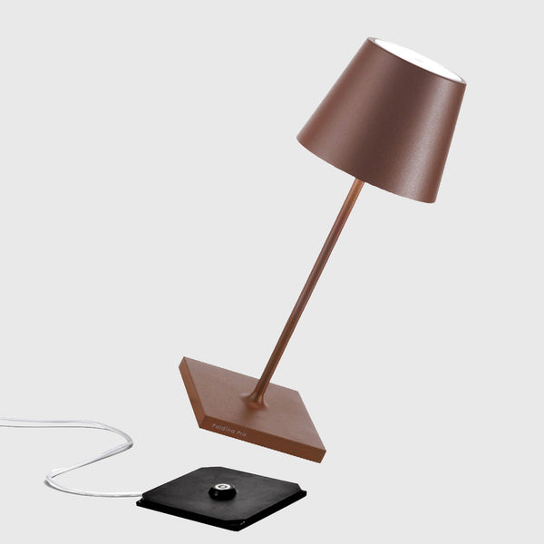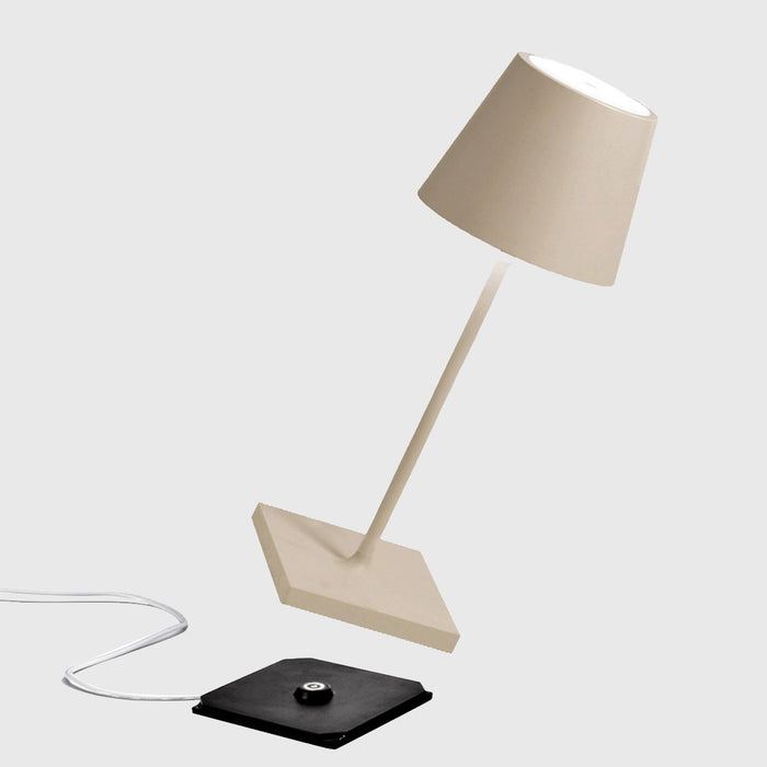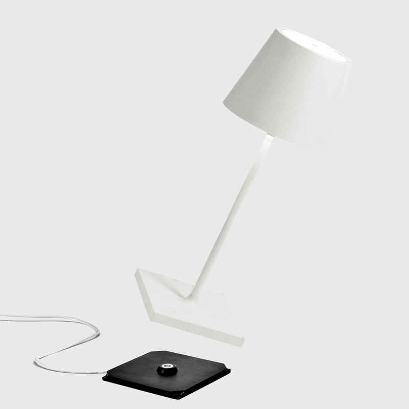 Poldina Mini Table Lamp is made of painted die-cast aluminium with a polycarbonate diffuser. Suitable for outdoor (lamp IP65 rating) and indoor use (lamp on charging base IP20 rating).