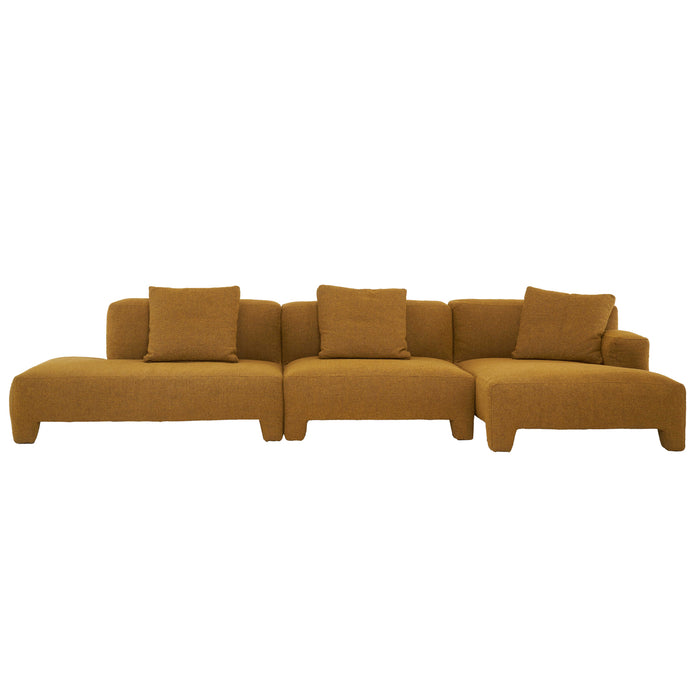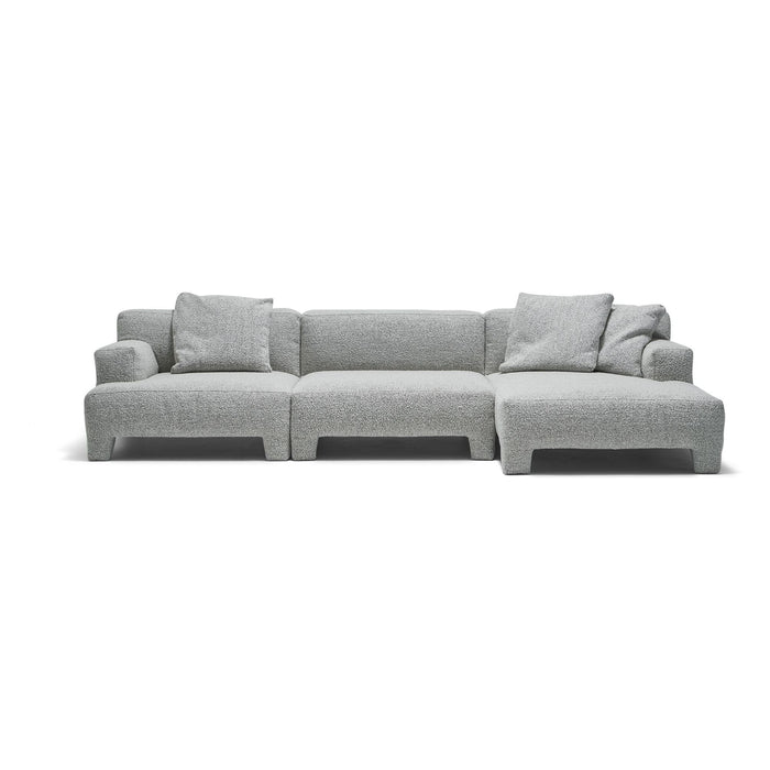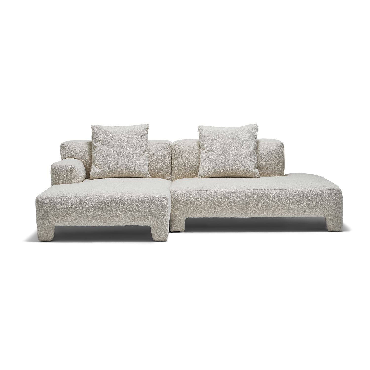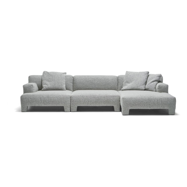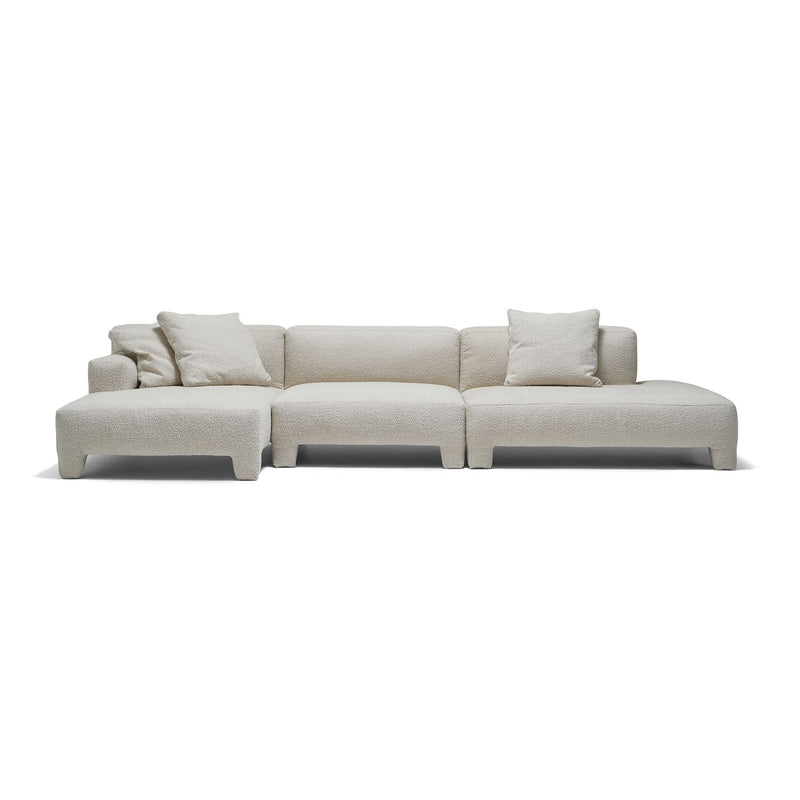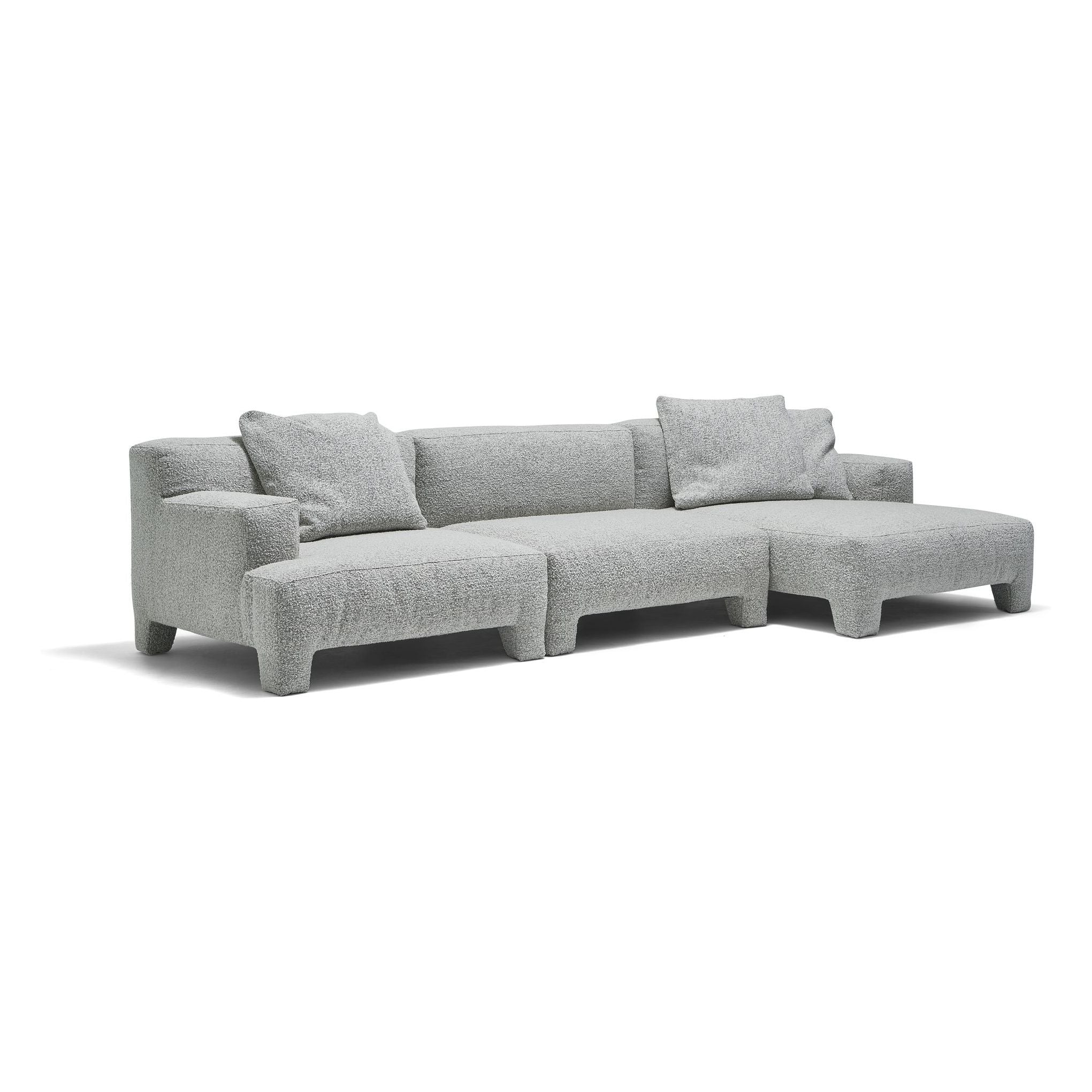 The block-shaped modular sofa has become a common staple of modern interiors, with many lookalikes. With Morocco, wesought to disrupt that, by re-imagining the typology. Legs materialize, not by adding legs, but by cutting away the redundant space in the middle, adding an unfamiliar expression to an otherwise familiar form. Scattered cushions, and deliberately slack upholstery emphasize the casual lounging mood ...evoking the ambiance of nomadic tents of Morocco.
