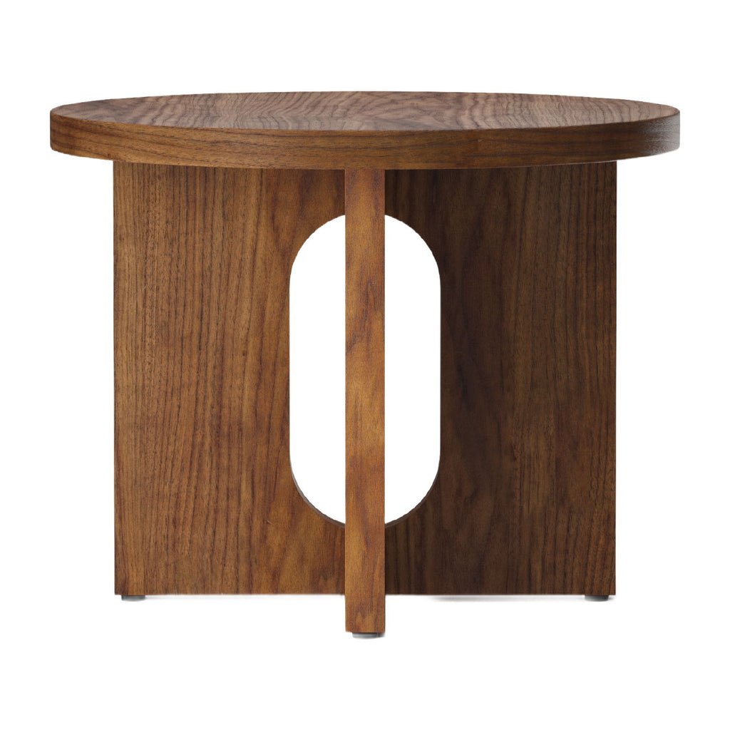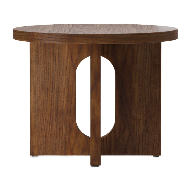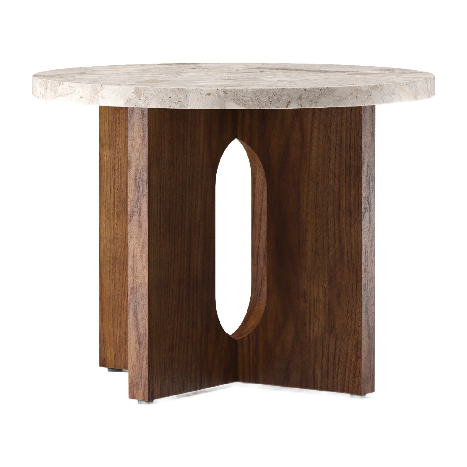 Perfectly proportioned with an intriguing combination of masculine and feminine elements, the Androgyne Side Table is a lesson in contrasts. Making clever use of craftsmanship, the round tabletop overhangs the wide, flat legged base in a meeting of solid and soft lines. Both base and top are sold separately and are available in natural or dark stained oak, walnut and Kunis Breccia stone respectively for a complete and customised furniture piece.