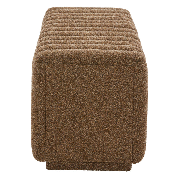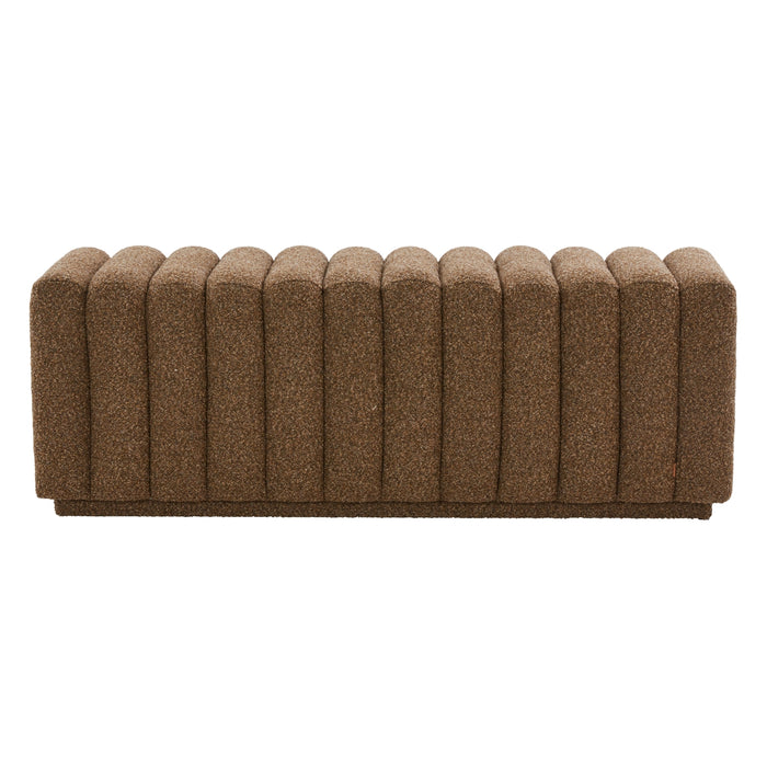The Astrid Bench is derived from a contrasting design and enjoys plush corners, light fabric, and an altogether sturdy build. Fantastic set by itself or beside your bed, this bench is a unique seating solution that will also drop a splash of colour to your space. A robust design that gives off a contemporary feel to complement its soft boucle charm.