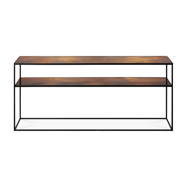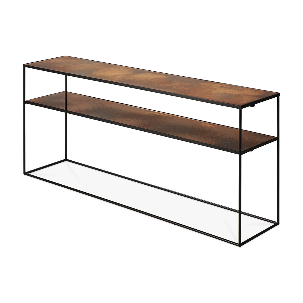 The sleek simplicity of this console makes for a graceful addition to your home. The frame's tall and slender design can complement almost any decor style. Its large mirror surface, in turn, is the perfect place to display a selection of your favourite souvenirs, eye-catchers or valet trays. This sofa console is the ideal size to place behind a sofa.