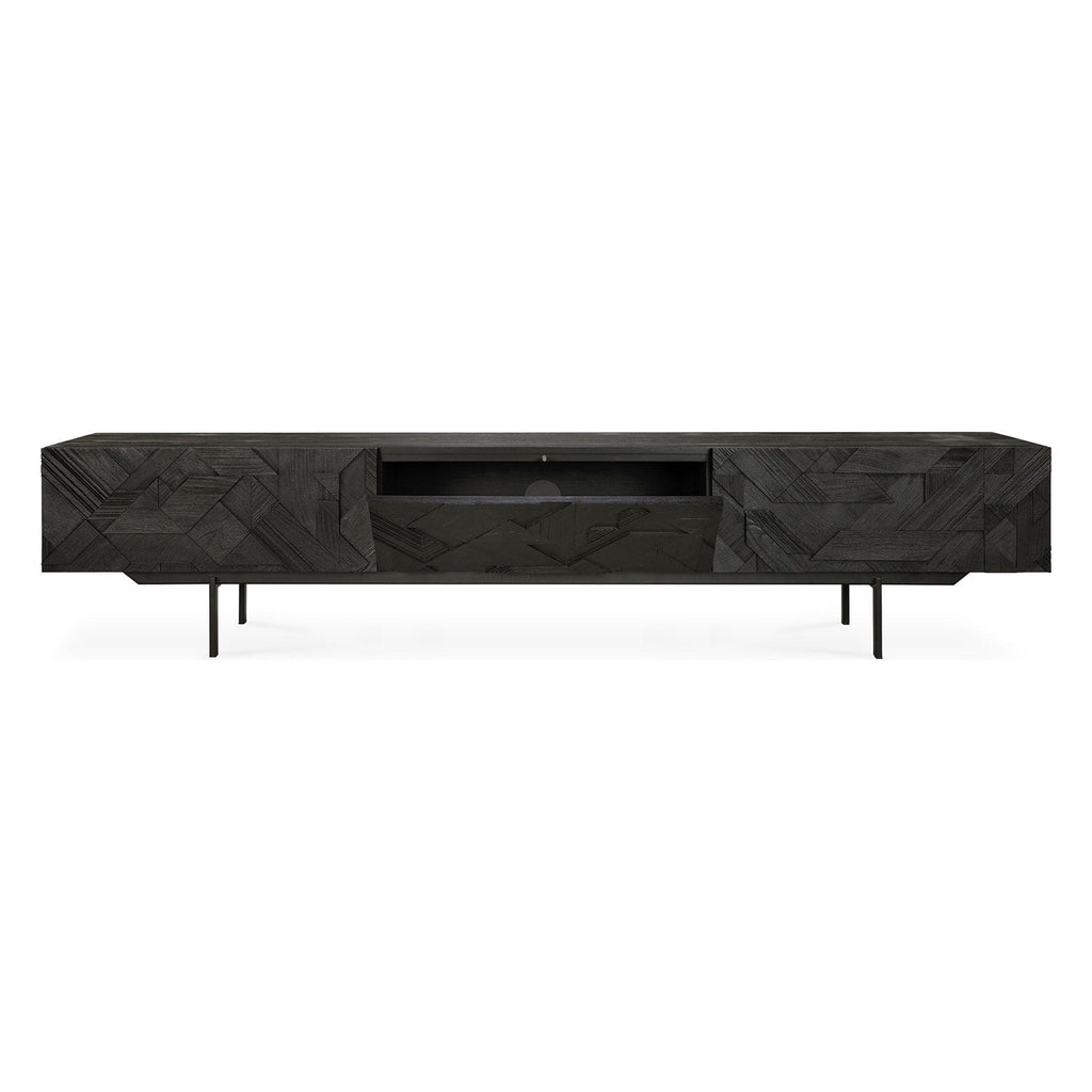 Ethnicraft Teak Graphic TV Cupboard - 1 Flip-down Door/2 Drawers
