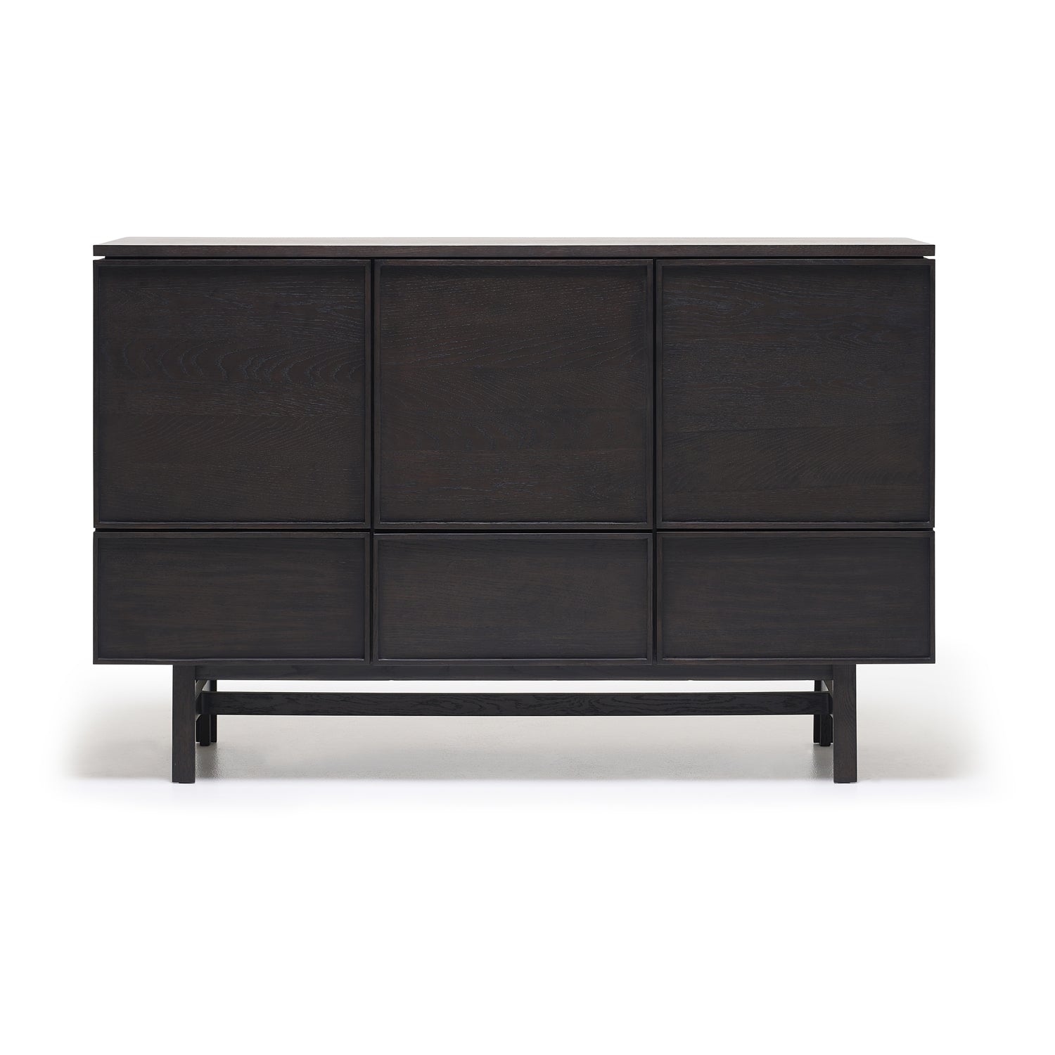 Yorke cabinets exude the calm assurance of symmetry. A crafted panelled motif on the fronts, effortlessly linking the past with the present, is the only decorative detail on an otherwise minimal linear form, well-grounded by thoughtful proportions. Choose from solid oak or natural stone for the top panel.