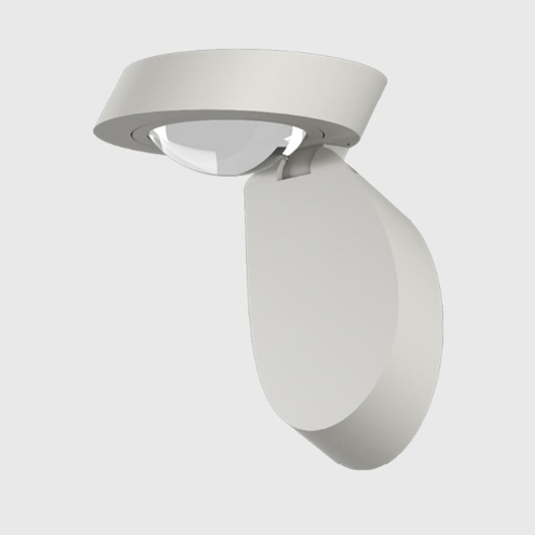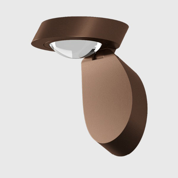 Pin-Up Wall & Ceiling Light by Lodes is constructed from metal which consists of two parts: the (a)base, which is fixed to the wall/ceiling, and a small (b)cover which houses the light source. That adjustable “covering” can be tilted up 90 degrees.