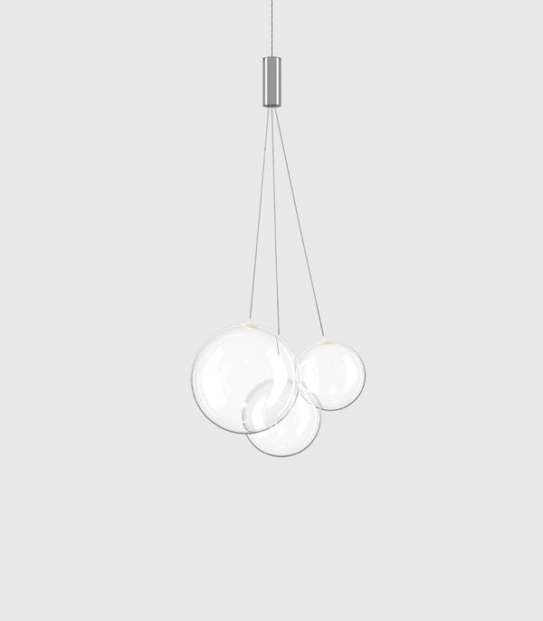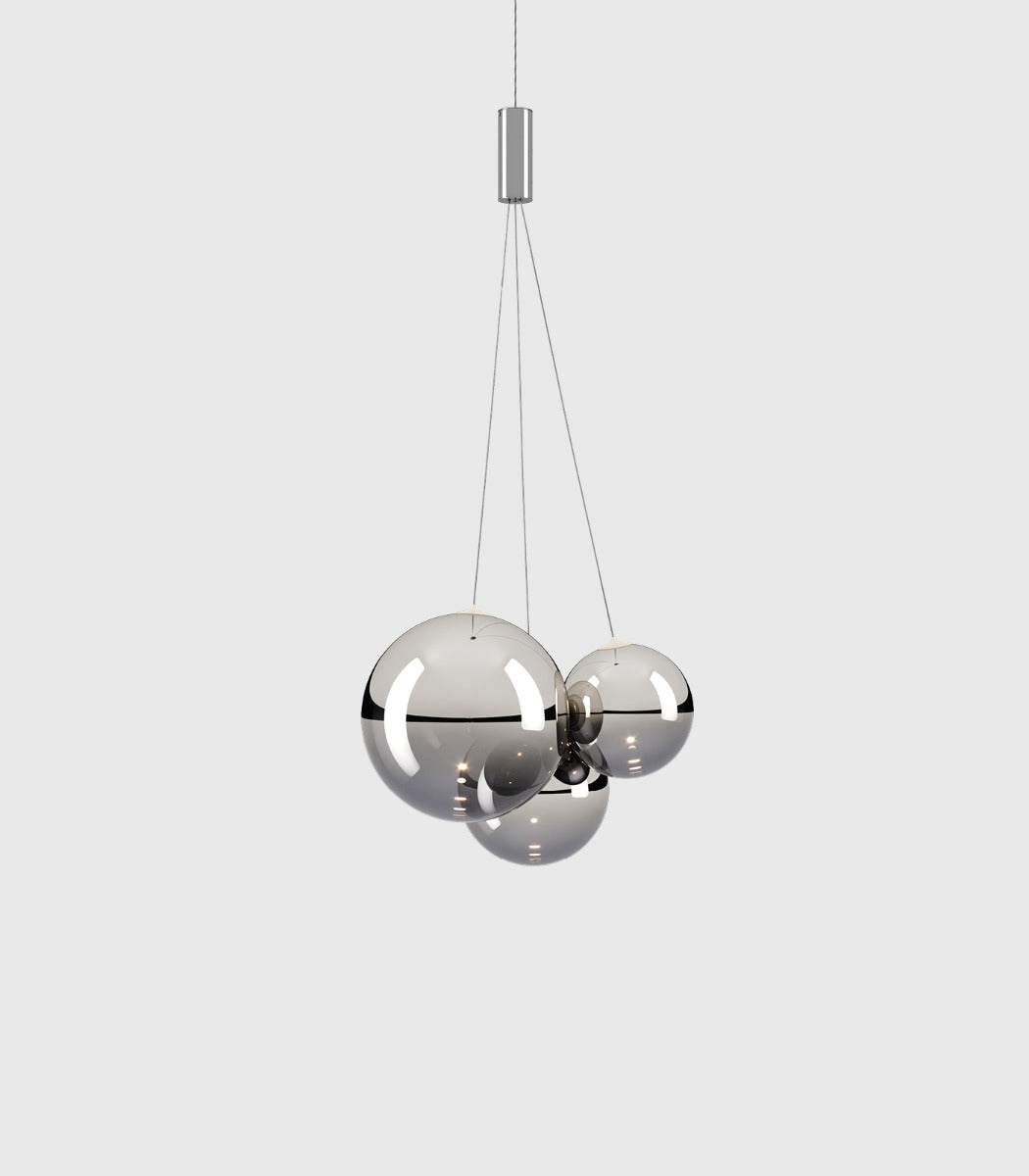 The Random Pendant Light is available in multiple glass finishes: chrome, crystal, gold and rose gold. Additionally, the suspension lamps cling at different heights and unalike sizes. Thus, the modularity of the range allows you to create an infinite variety of clusters.