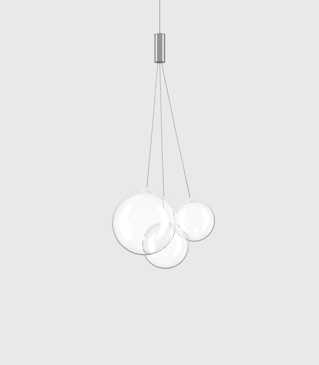 Random Pendant Light by Lodes is a magical suspension that consists of three spherical diffusers – blown glasses with individual cables suspended by a single major cable.