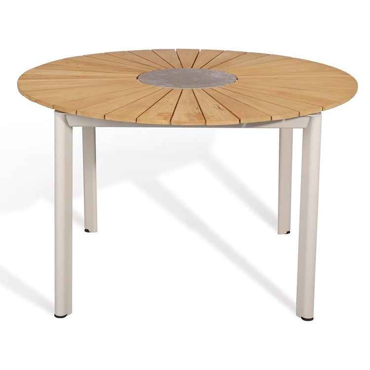 This dining concept offers superior comfort and unique details that set the scene for special moments with friends, family, or some peaceful moments alone. The dining table comes with in teak with the ceramic centrepiece. Designed by Thomas E.Alken