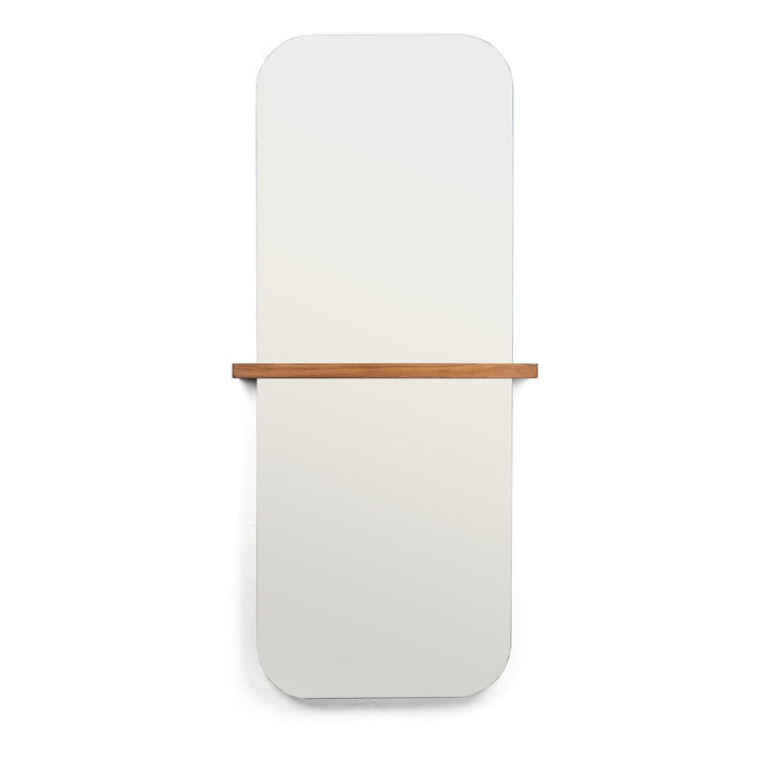 The Grace mirror is a sophisticated adornment to any bedroom or dressing room. Wall mounted, the curved cornered, optically perfect mirror has a unique, mid line, skilfully crafted, reclaimed teak shelf. Beautifully crafted to Grace your home.