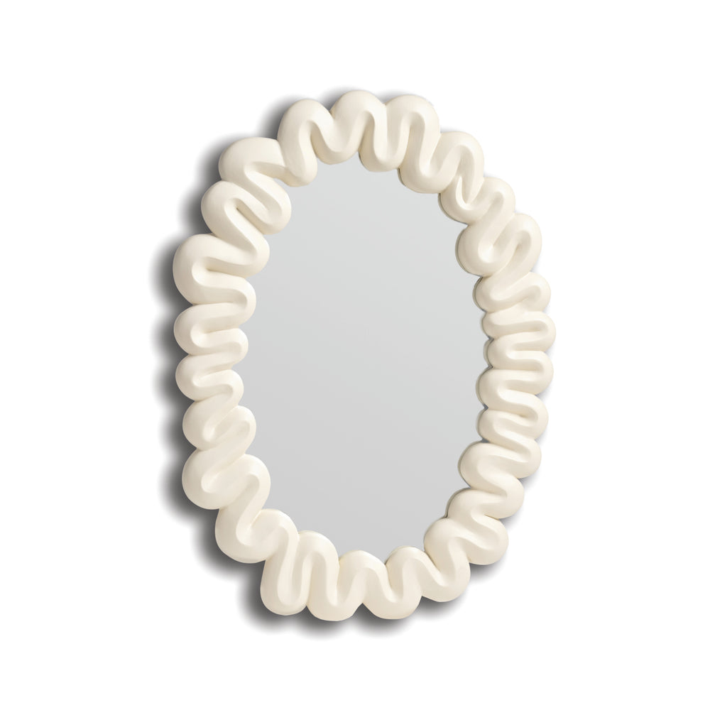 Treat yourself to one last look in the dribble mirror before you leave the house. The irregular shape and bright white finish give this mirror its distinctive look. The oval frame is fitted with a hook at the back to mount the mirror securely to your wall.
