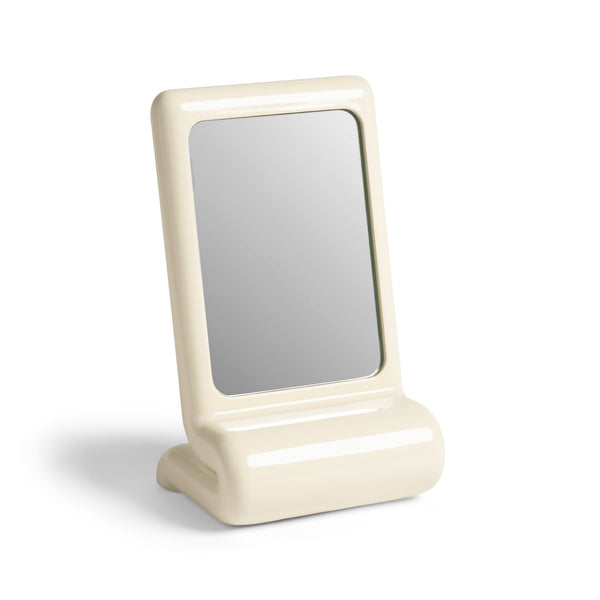 Bold shape, everyday function: meet the mirror vanity. With its chunky, candy-like shape and playful curves, this mirror is both sweet and striking. Reflecting the signature design language of &K, it balances softness and statement in one compact piece. Its hand-friendly size makes it perfect for everyday use, whether perched on a bathroom shelf or at a bedside table.
