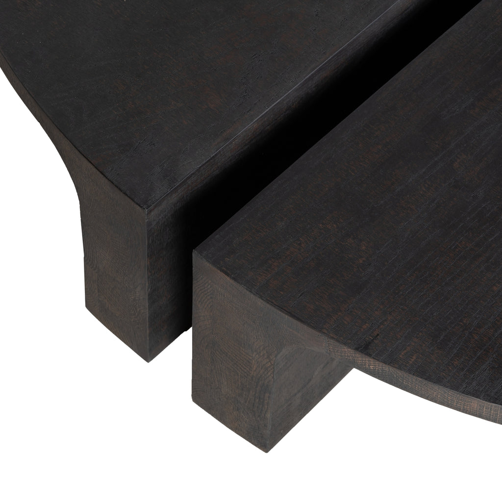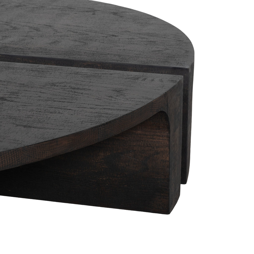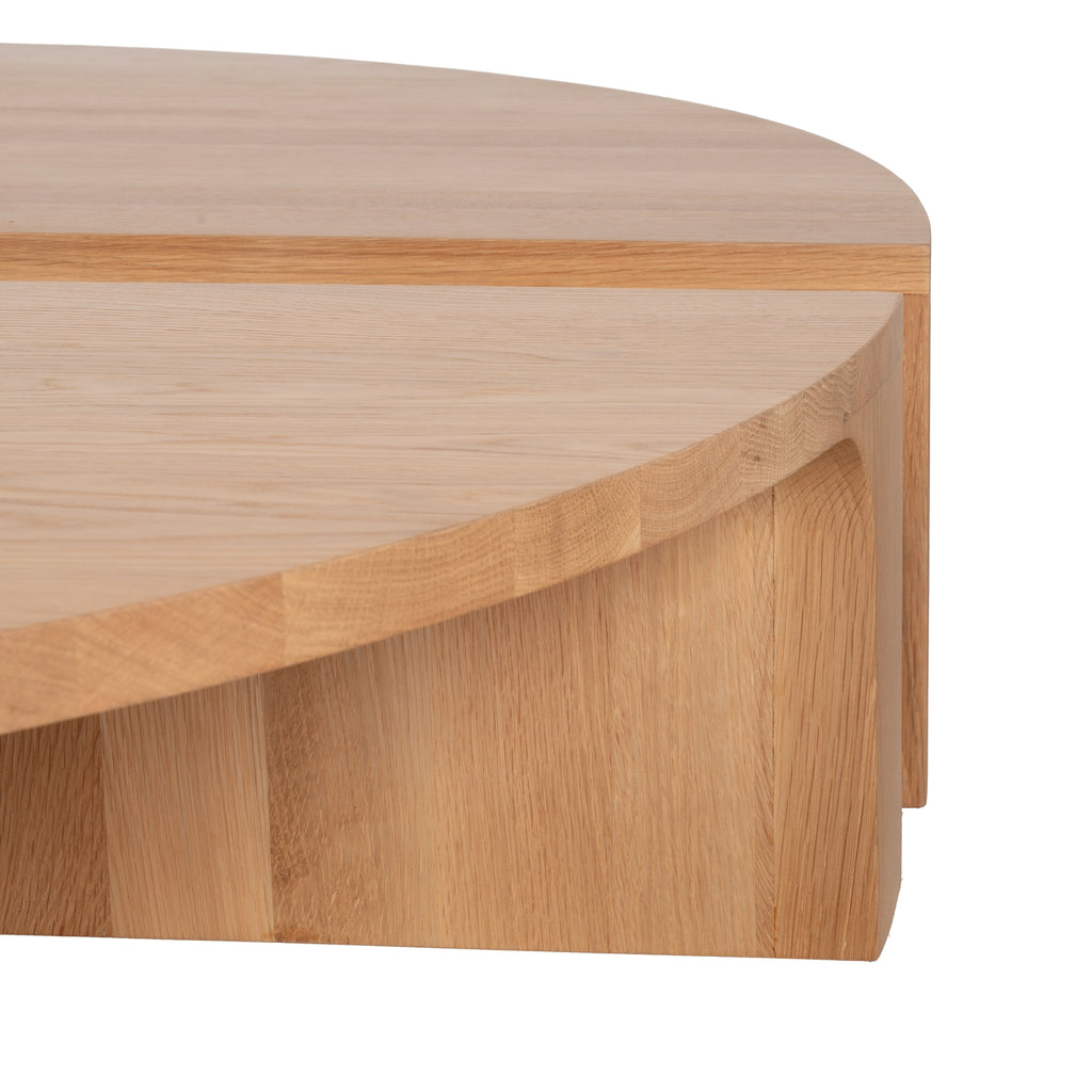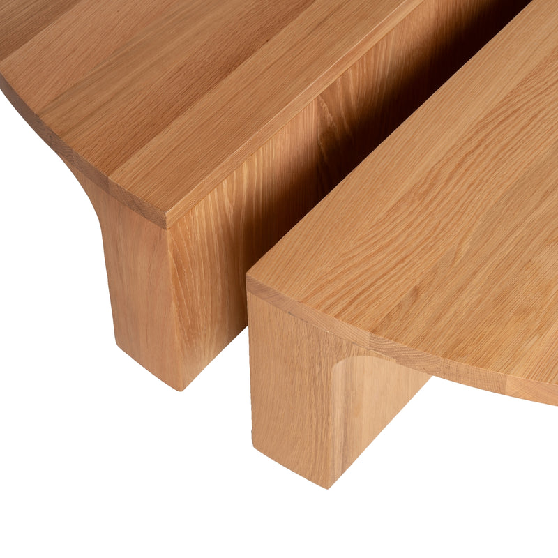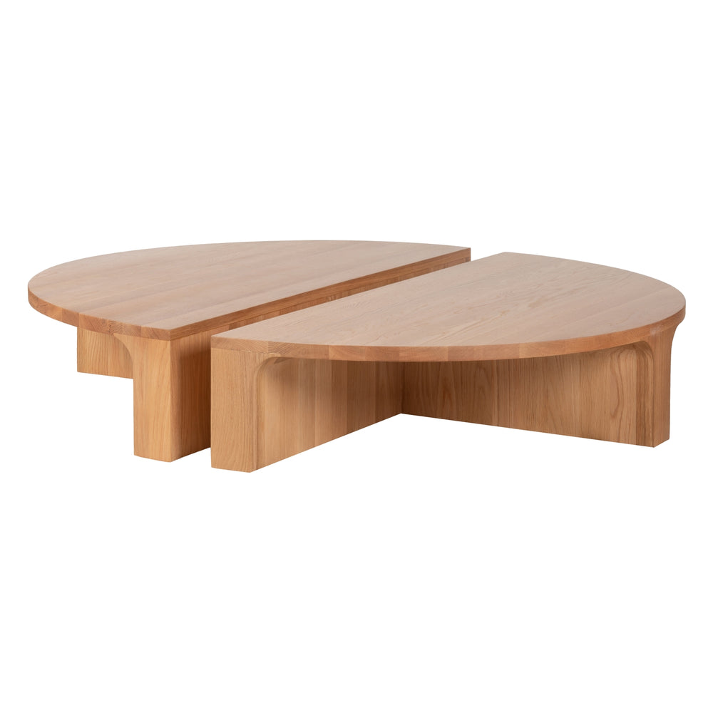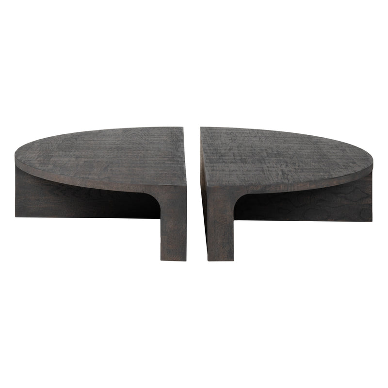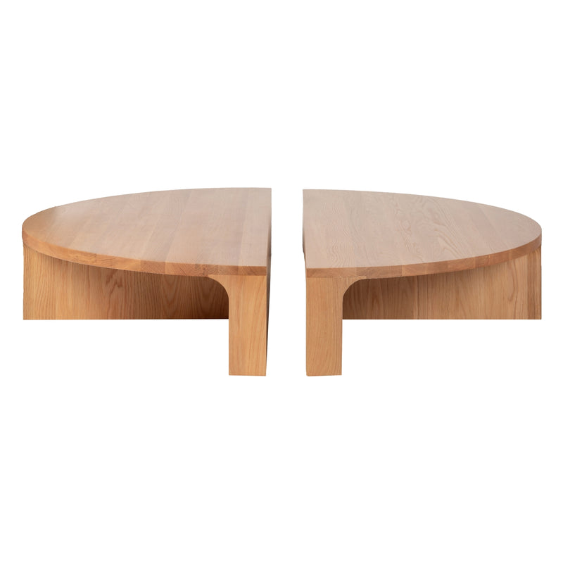 A study in balance and versatility, the Stoic Coffee Table set brings sculptural presence to your living space. Crafted from solid timber, the design features two half-round tables that form a complete circle when paired together. Use them side by side for a bold centrepiece, or separate them to style across your room. The natural grain of the timber enhances the organic curves, offering a timeless piece that blends function with understated elegance.