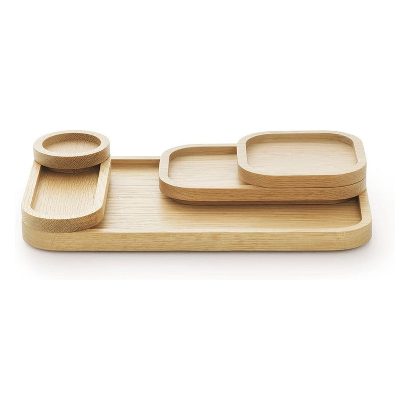 Each tray has its own unique shape, though common to them all is their rounded, organic form and their well-balanced proportions. This gives them a harmonious expression whether the trays are used together or individually. The warm color from the durable oak adds a natural, exclusive look to this practical design.