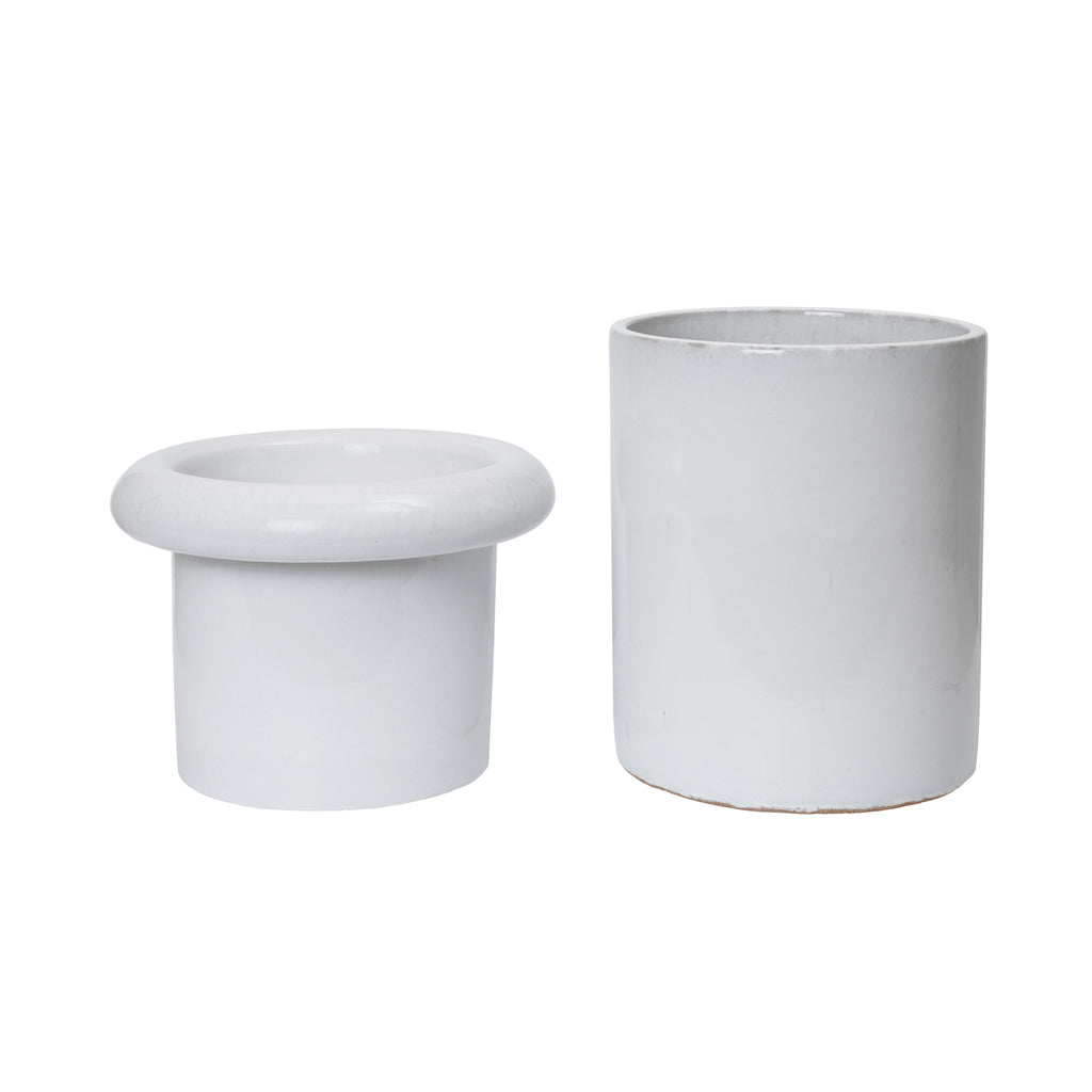The Rollo Pot features a playful, modern design with a slim silhouette and a bold, distinct border. The included saucer is available in different heights, adding versatility and dimension to the design. These saucers not only catch excess water to prevent spills but also create a more dynamic visual display. Suitable for both indoor and outdoor use, the Rolo Pot balances practicality with modern elegance.