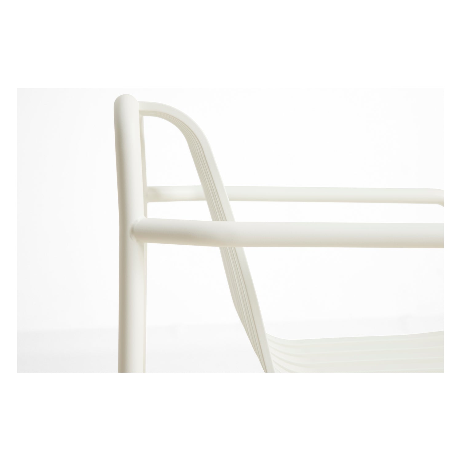Palissade is a collection of outdoor furniture designed by Ronan and Erwan Bouroullec for HAY. The collection was designed to fit a wide variety of environments: cafés, restaurants, gardens, terraces and balconies. The construction allows a wide range of typologies with a common formal language. From stools and benches to chairs and tables, lounge chairs and sofas – the collection comprises 13 different elements, united not only by their graphical image but also by their common characteristics: they are strong without being bulky, elegant without being fragile.