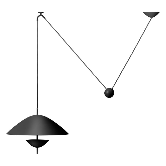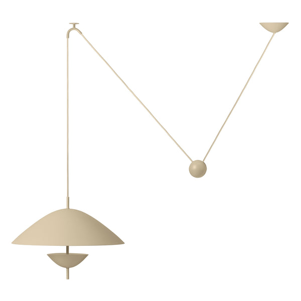 Referencing the Danish word for 'weight', the Lod Pendant gracefully captures a playful yet elegant design. With a striking graphic silhouette, the height of the lampshade can be easily adjusted using the counterweight or the shade’s perpendicular rod. Bathing your space in a gentle and luminous glow, the pendant illuminates with a soft radiance, while its reflective surfaces contribute to a soothing atmosphere. The Lod Pendant is completed by a matching ceiling bracket and canopy and is accompanied by a textile cable that enhances its visual allure and adds to its overall graphic charm.