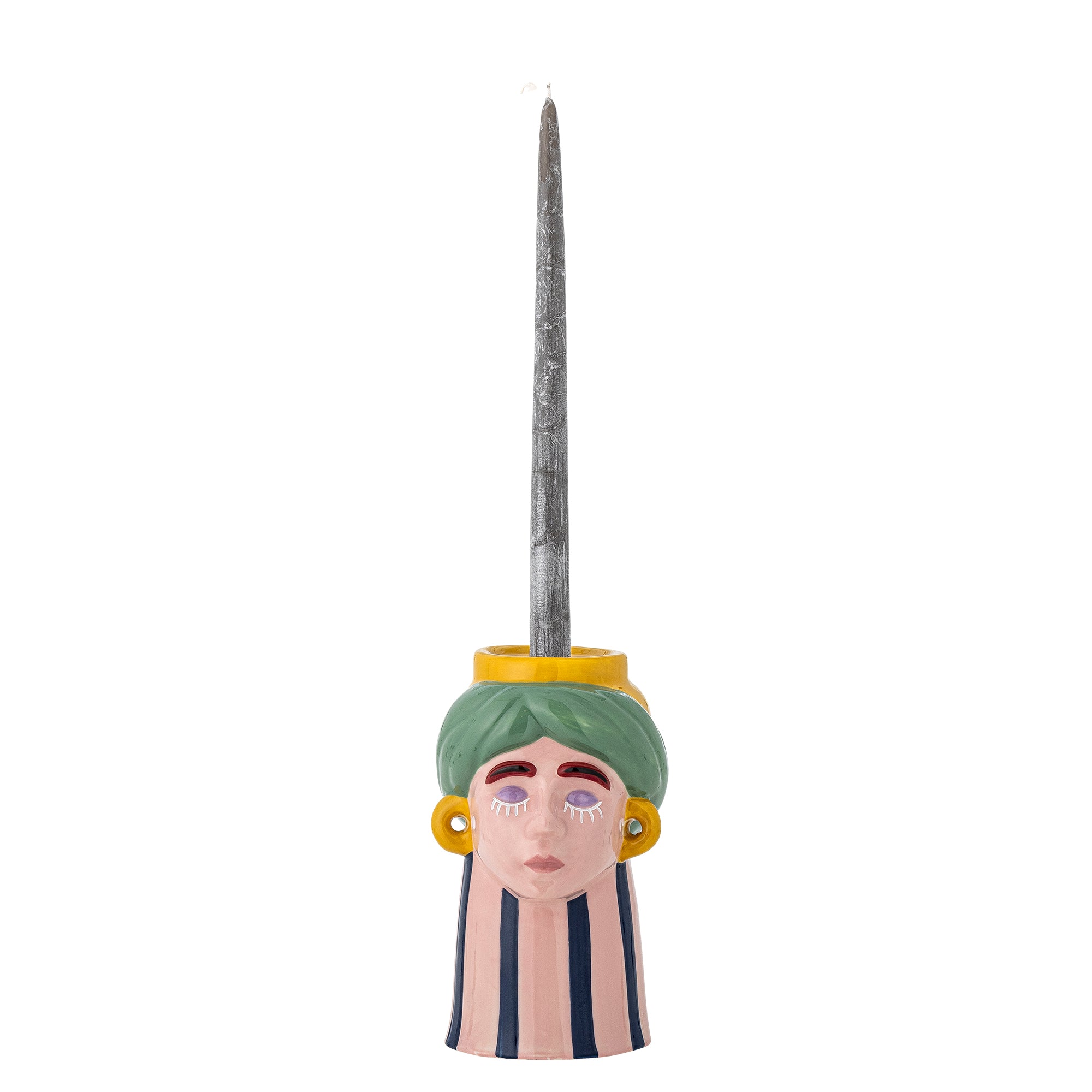 The Miss Jody Vase by Bloomingville has a sculptural shape depicting a face and can be turned to function as both a vase and candle Holder. It is made of stoneware and decorated in hand-painted colors. Small variations may occur and make each Vase unique.