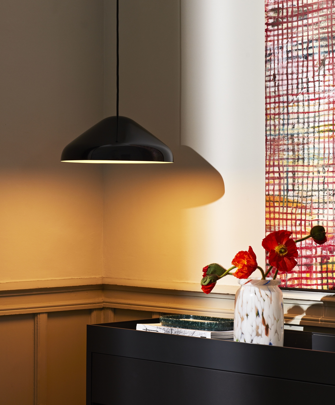 Handmade using a special glassblowing technique that involves multiple layers of coloured glass dots, the Splash Vase features a unique swirled pattern. Available in different designs and sizes, the vases can be used both for displaying flowers and as decorative objects.