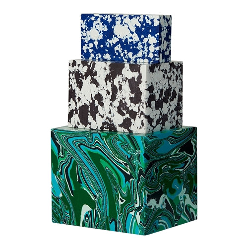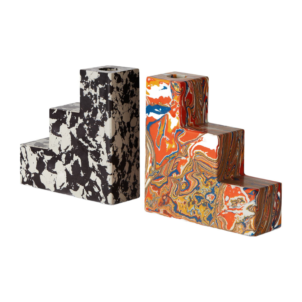 Swirl Stepped are a pair of bookends that have a distinct silhouette, colouration and personality. Substantial in weight, smooth in texture and bold in pattern, Swirl will inject a fresh pop sensibility into any setting. Made using recycled powdered marble residue, the sculptural bookends are both decorative and functional.