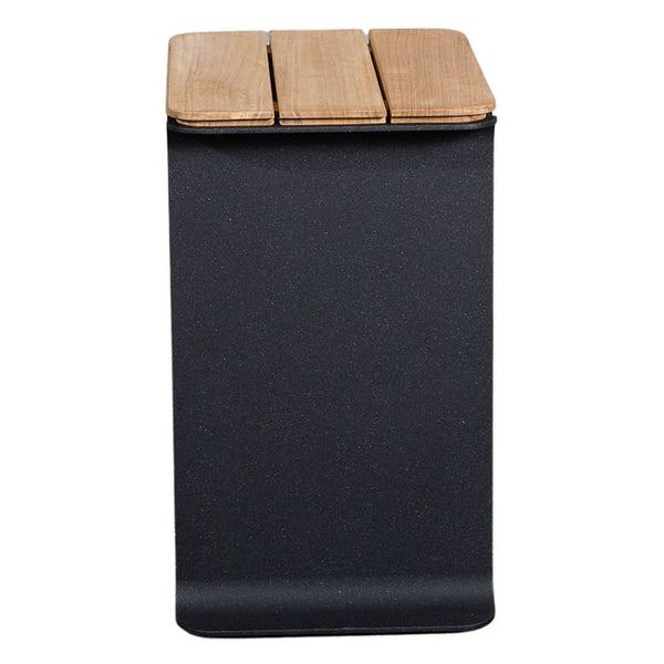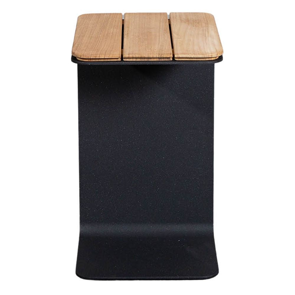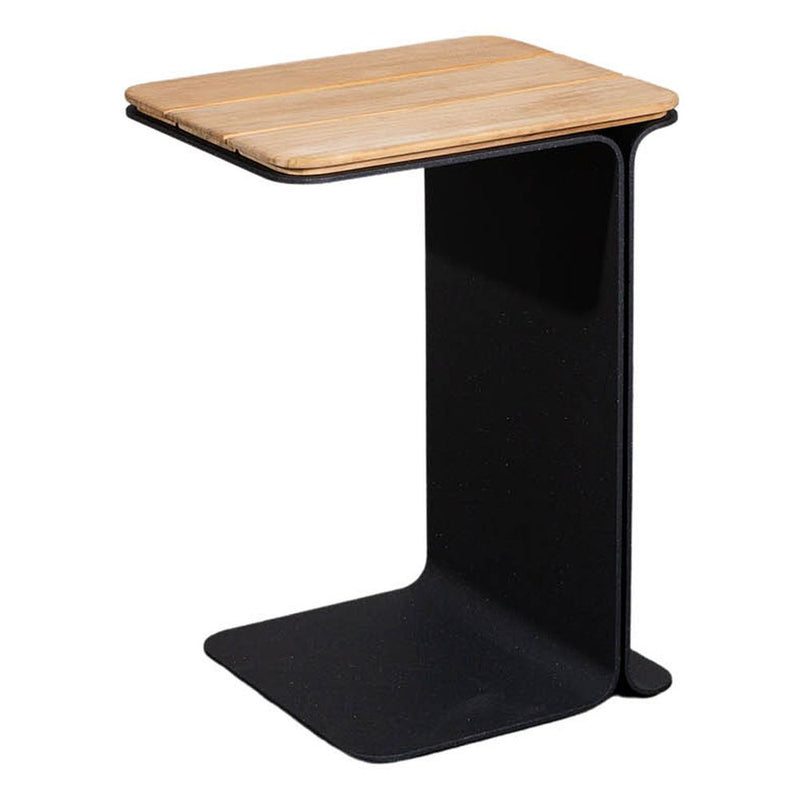 Mega is a small practical side table that fits perfectly with a wide variety of our sofas. A sleek and elegant design from the byKATO design duo. Mega acts as an insert table where the leg can be pushed under the sofa to leave you with a small practical table close to hand. With its solid steel frame and warm teak top, Mega is both highly stable and easy to move around. The contrast between the warm teak and the raw steel frame gives it a minimalistic urban look that fits perfectly into the modern outdoor space.