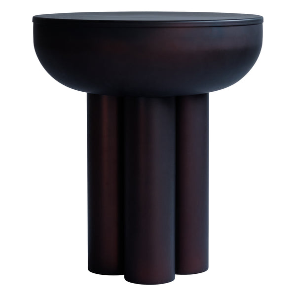 The collection of tables entitled Crown is in its monumental presence formed as a circular table top carried by four-cylinder shaped legs. Standing strong and proud, the table is inspired by the bare, structural elements of Brutalist architecture, celebrating the columns, and eluding an attitude towards too many details.
