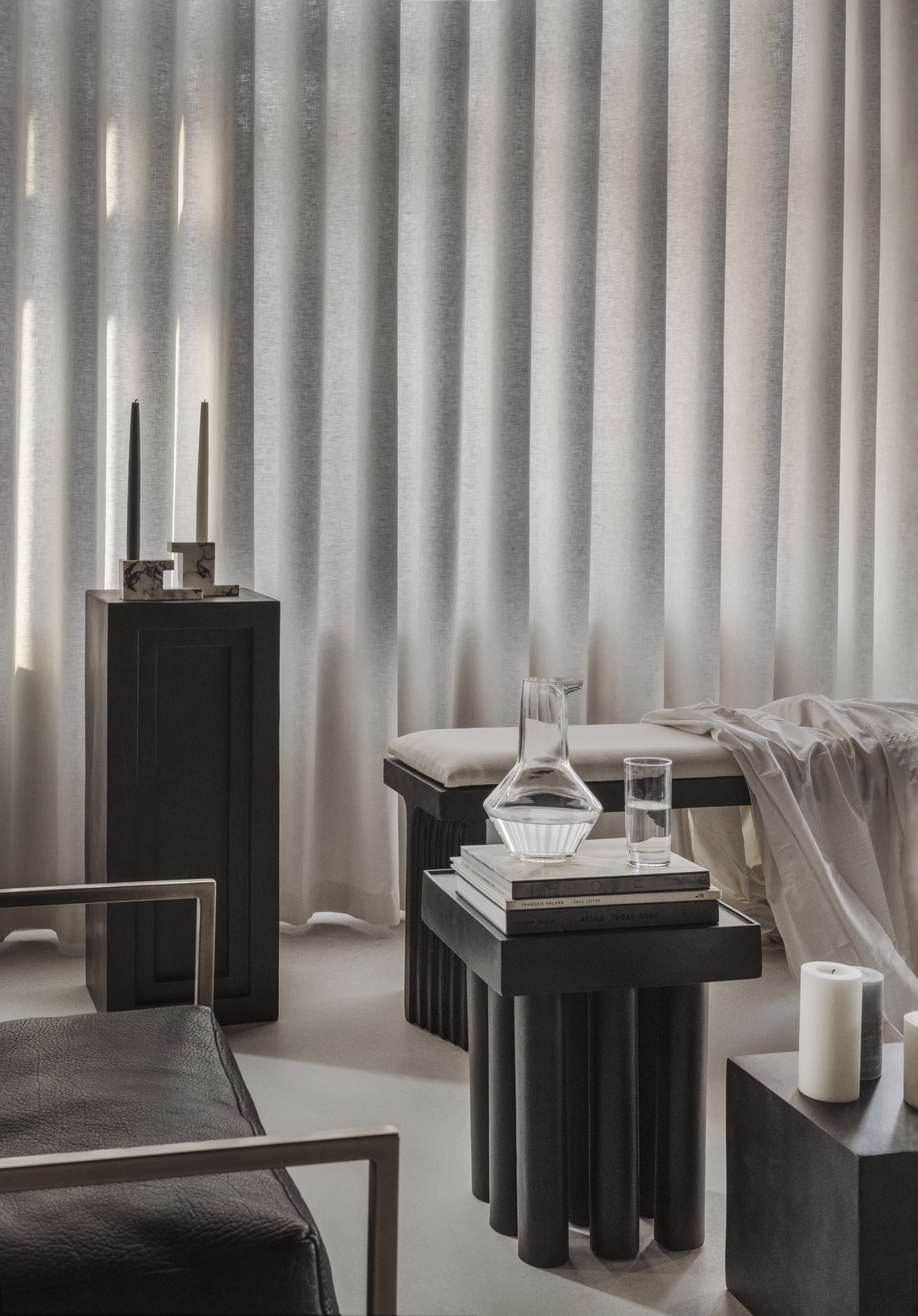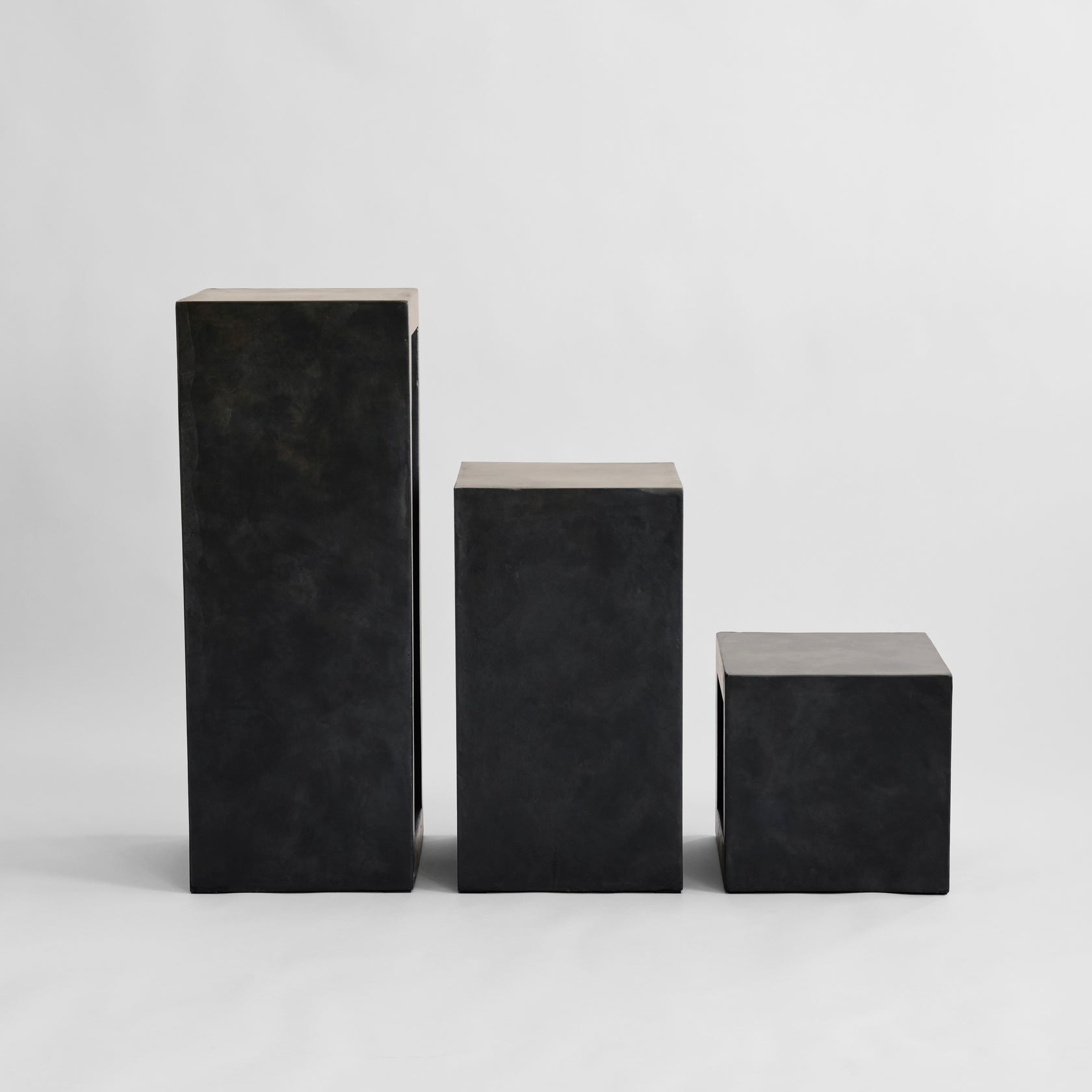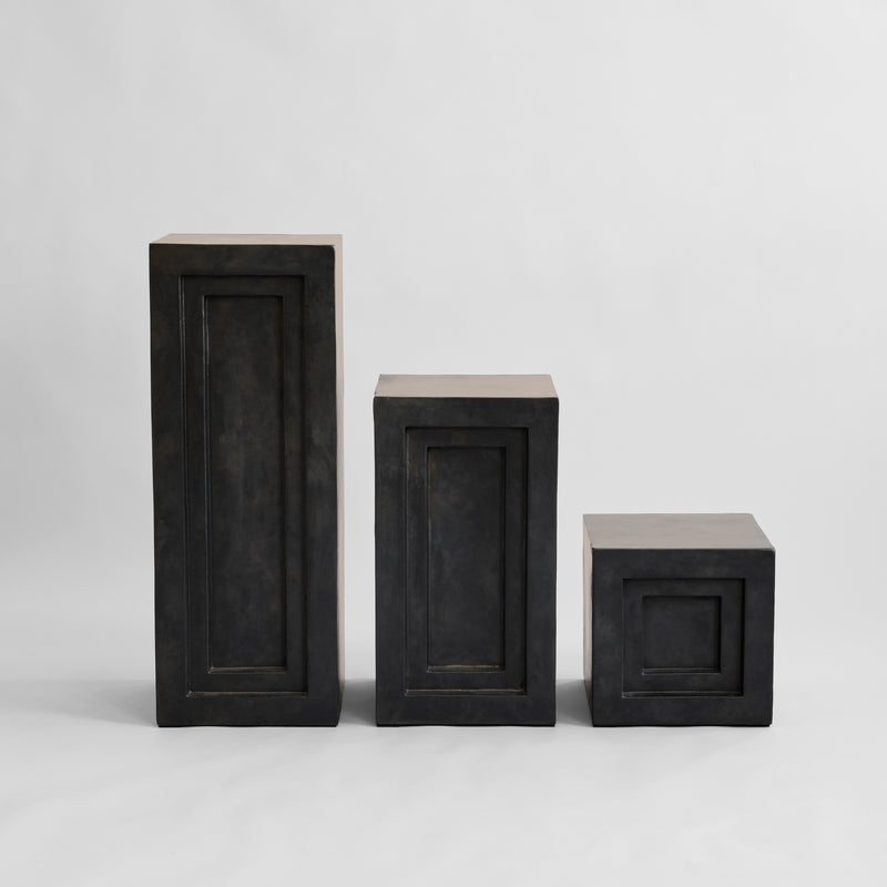 Podium is a means to get the gallery feeling and exhibit your favourite object or piece of art at home. Inspired by architectural façade details, each podium has a carved relief on two opposing sides, creating a beautiful play of shadows changing throughout the day, depending on the direction of light. The podium can be placed both horizontally and vertically, facing a wall or standing freely in a room as it has no backside. Available in three different heights, the podium is just as suitable for use as a side or coffee table.