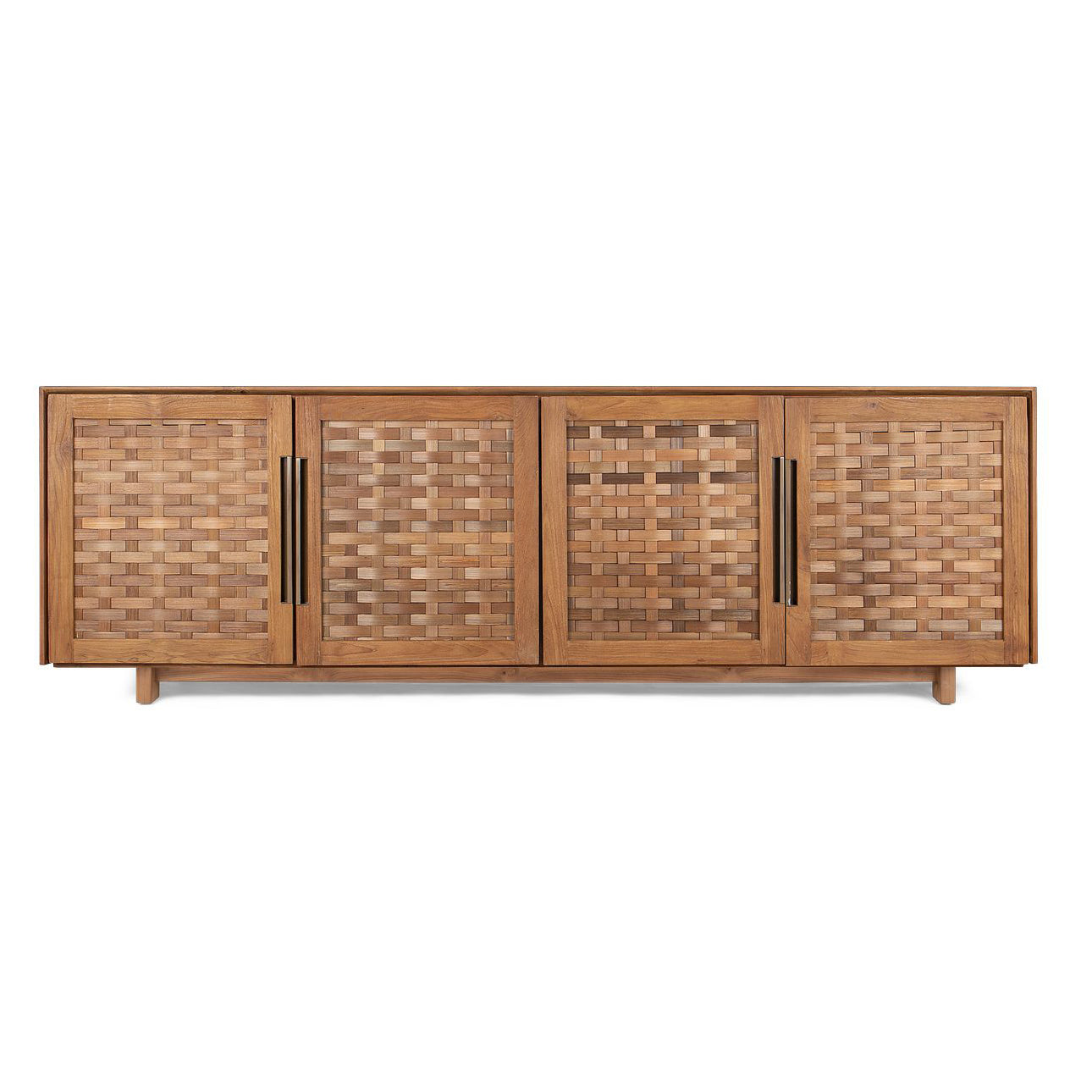 For this beautiful four-door dresser from our Karma collection, various craftsmanship techniques are used. The dresser is handcrafted from reclaimed wood, and beautifully structured doors of handwoven rattan.