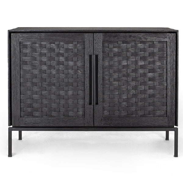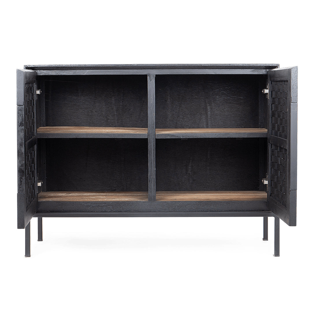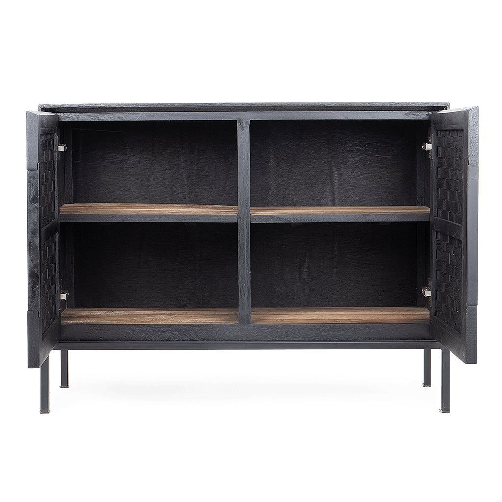 For this beautiful two-doors dresser from our Karma collection, various craftsmanship techniques are used. The dresser is handcrafted from reclaimed wood, has iron legs and beautifully structured drawers of handwoven rattan.