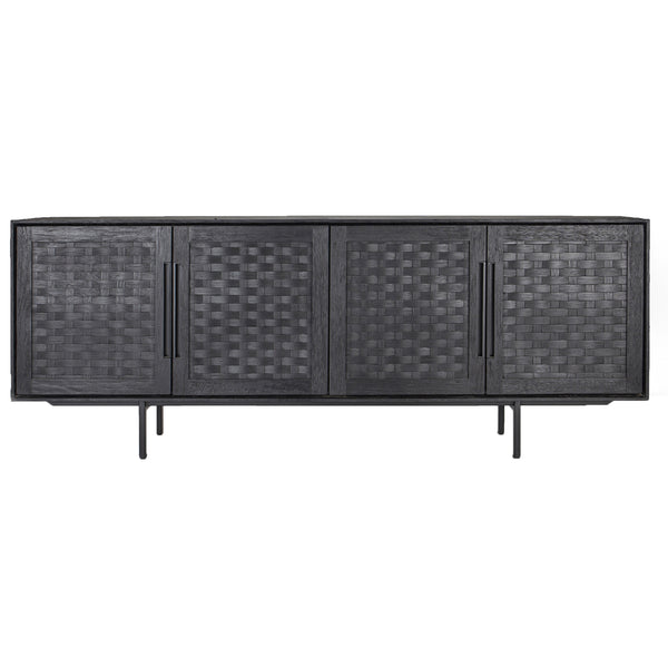 For this beautiful four-door dresser from our Karma collection, various craftsmanship techniques are used. The dresser is handcrafted from reclaimed wood, has iron legs and beautifully structured doors of handwoven rattan. The playful position of its legs adds a more mid-century vintage feel to the design.