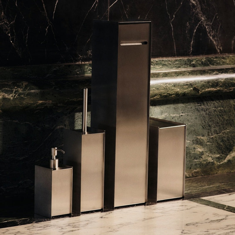 The Sama Toilet Brush is part of the Sama Series, a collection of modern bathroom essentials crafted from brushed stainless steel. Defined by its sharp, geometric form, it offers a stylish and contemporary take on a utilitarian object. The brushed steel finish integrates seamlessly into a range of interiors and is paired with a black toilet brush. An extra brush head is included for practicality.