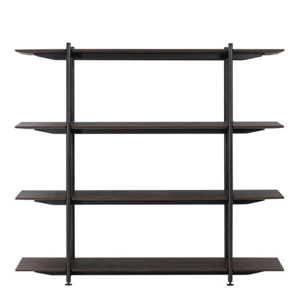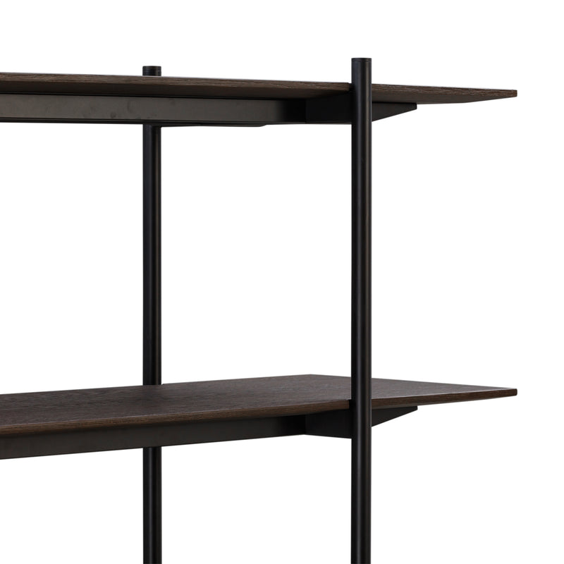 The Formal Shelving system by kindred spirit and long-time collaborator, Jonas Wagell, is constructed with only two materials. Framing and supporting the slim shelves in brown stained oak veneer, a structure consisting of horizontal and vertical trussed poles in black powder-coated steel creates a sturdy grid with subtle joints.