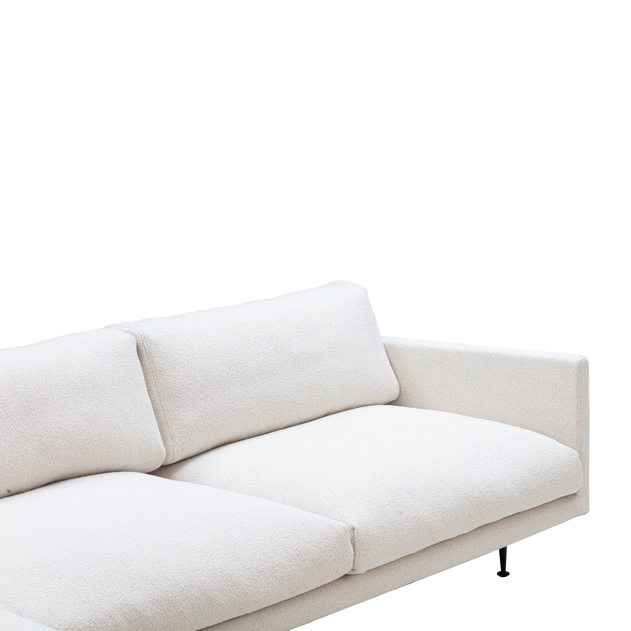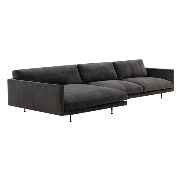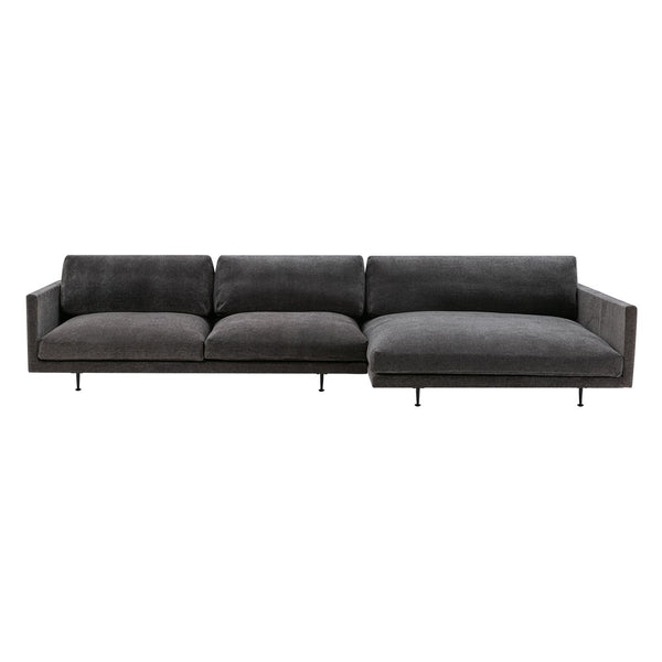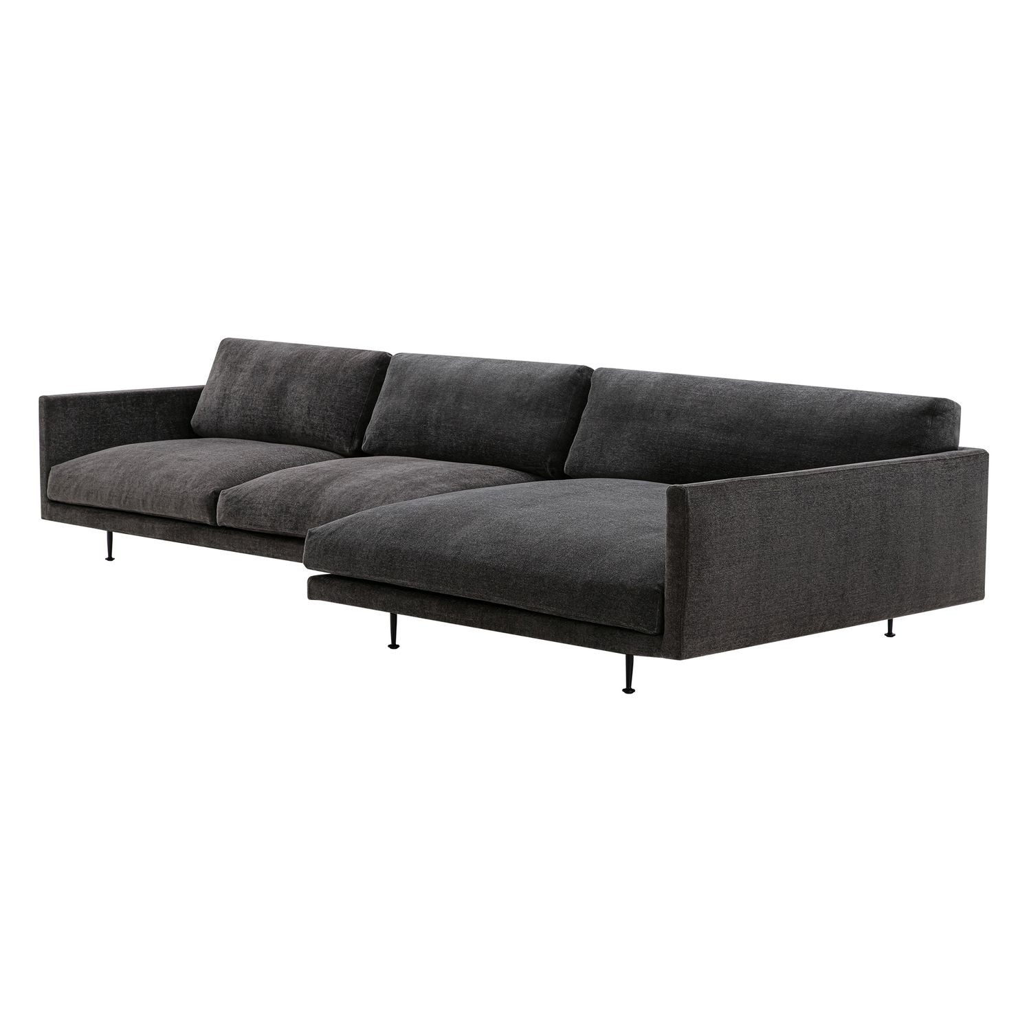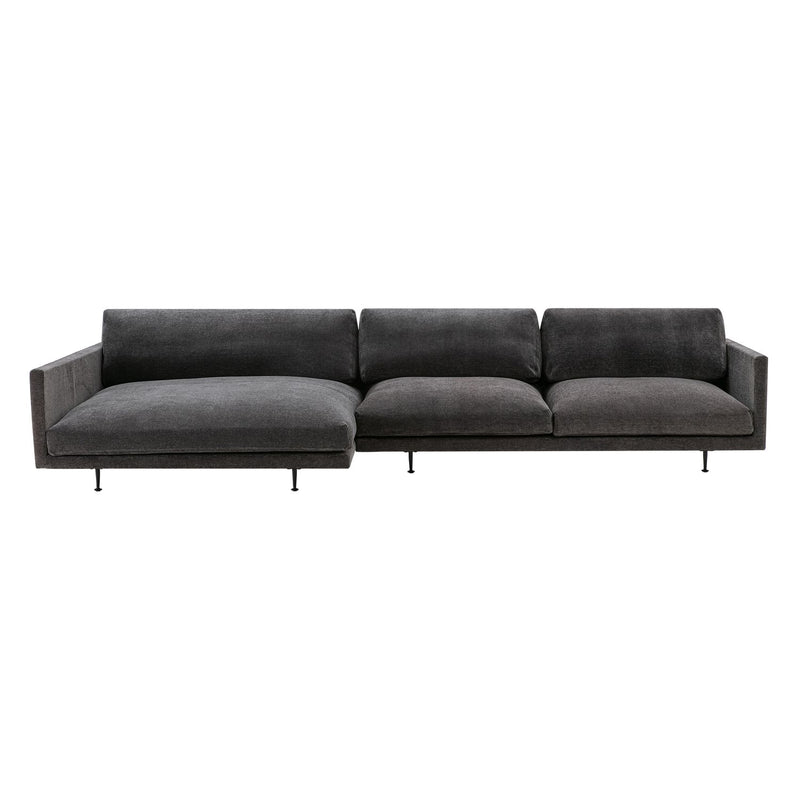 Drawn with dimensions that exude comfort, depth and modern elegance, the Maho Sofa is a study in lounging — a true retreat for days of slowing down, enhanced through loose cushions with down fill. Crafted as a voluminous low-lying lounge design, the Maho Sofa rests atop a slim and sharply defined frame in black powder-coated steel.