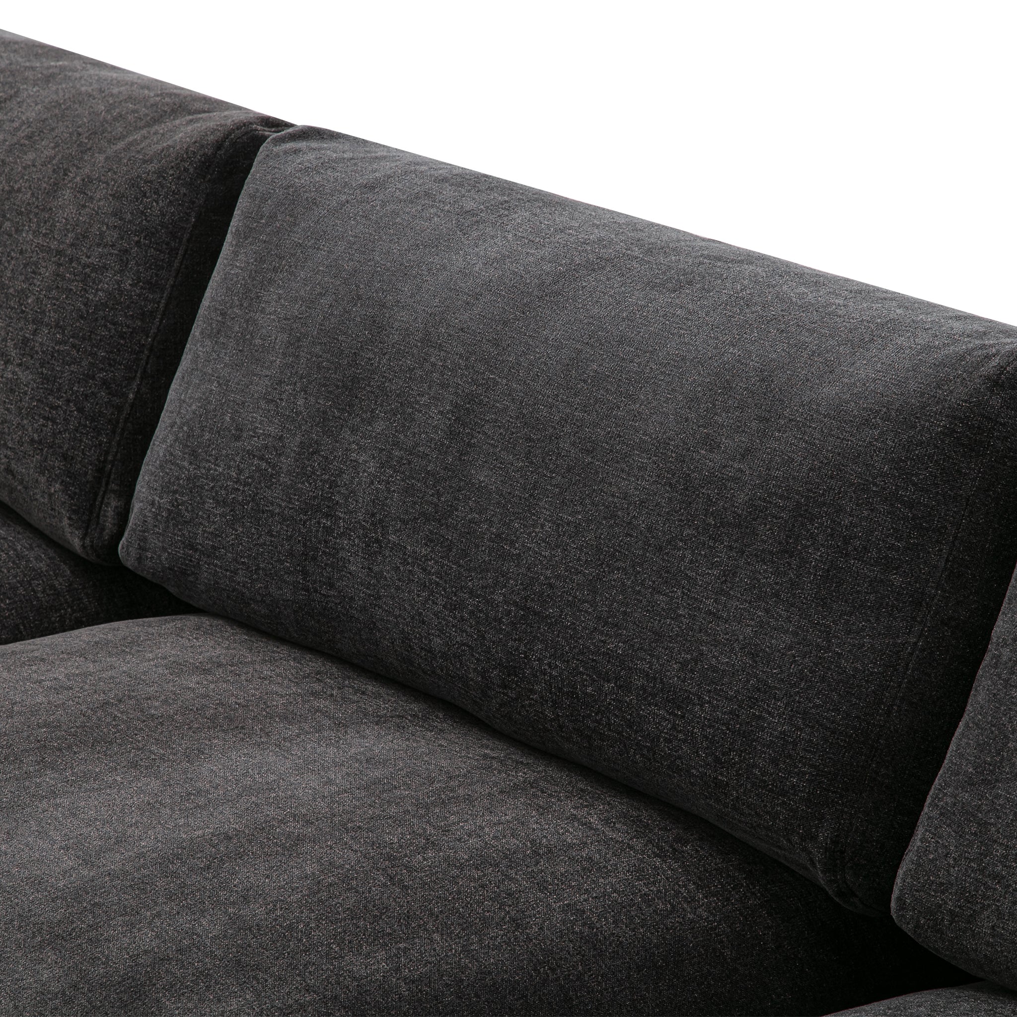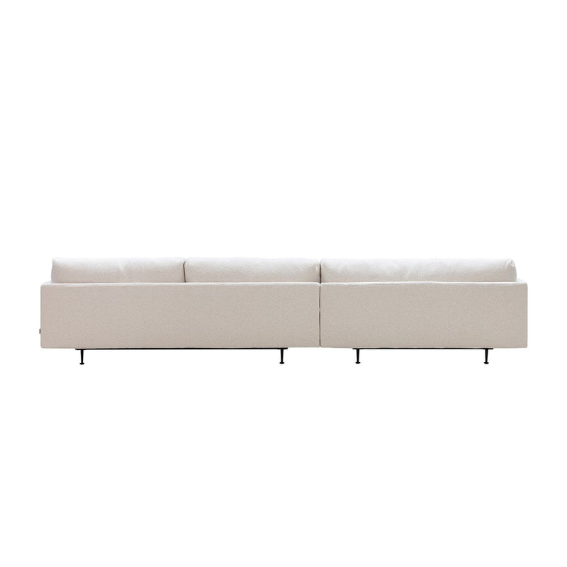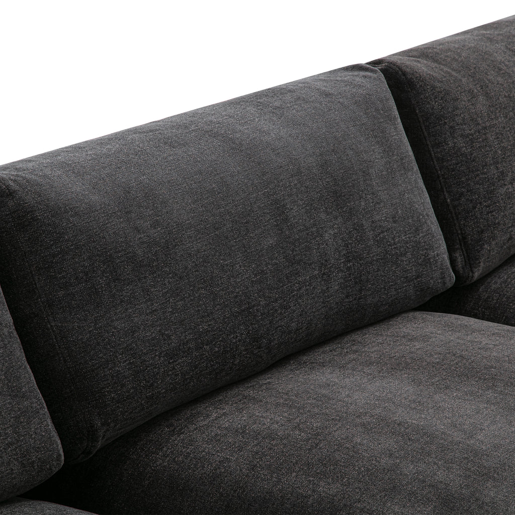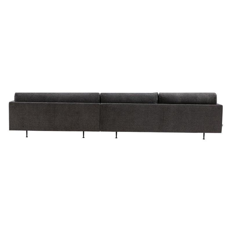 Drawn with dimensions that exude comfort, depth and modern elegance, the Maho Sofa is a study in lounging — a true retreat for days of slowing down, enhanced through loose cushions with down fill. Crafted as a voluminous low-lying lounge design, the Maho Sofa rests atop a slim and sharply defined frame in black powder-coated steel.