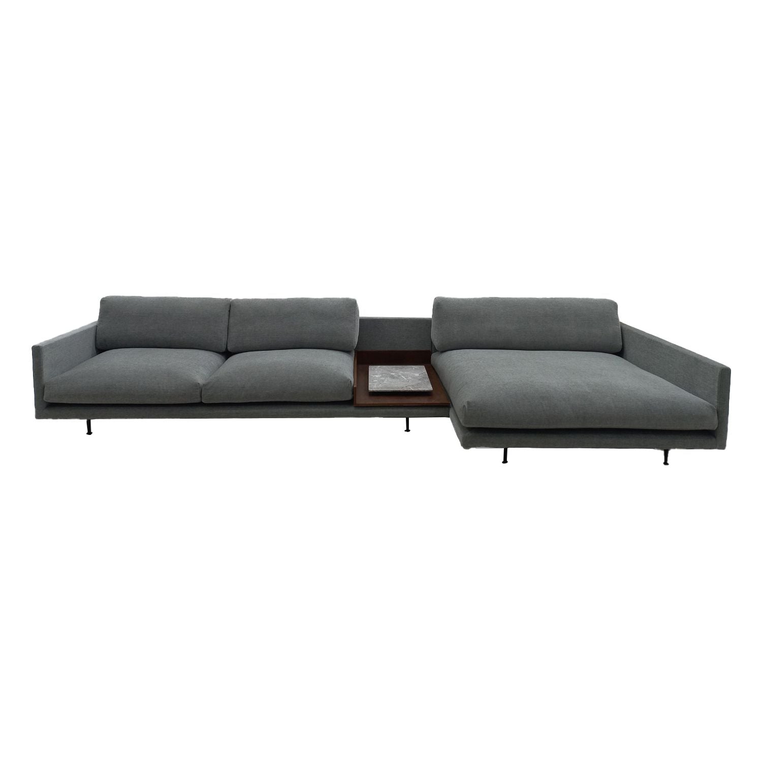Laid out like a giant game of Mahjong, endless possibilities for combinations, and mixed with very wide and low proportions, this is a super lounger, looking very generous, a true retreat, where loose down cushions, are offering the utmost snug comfort.Designed by Henrik Pedersen from 365 North.