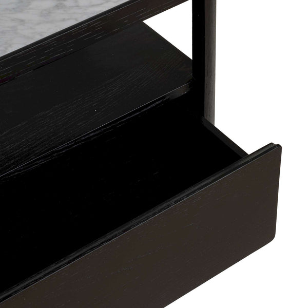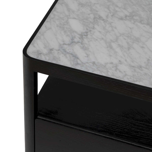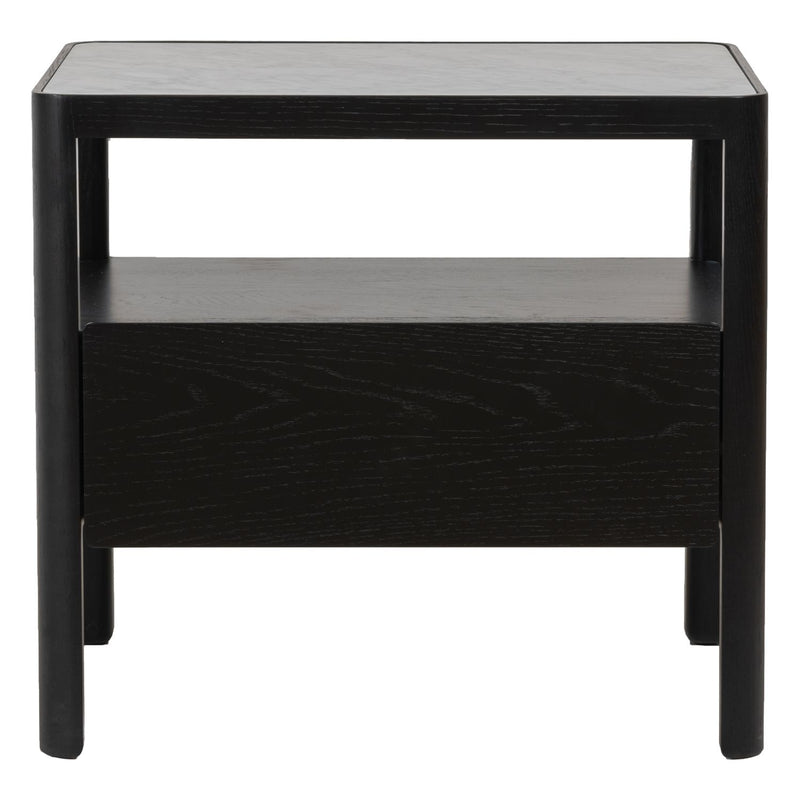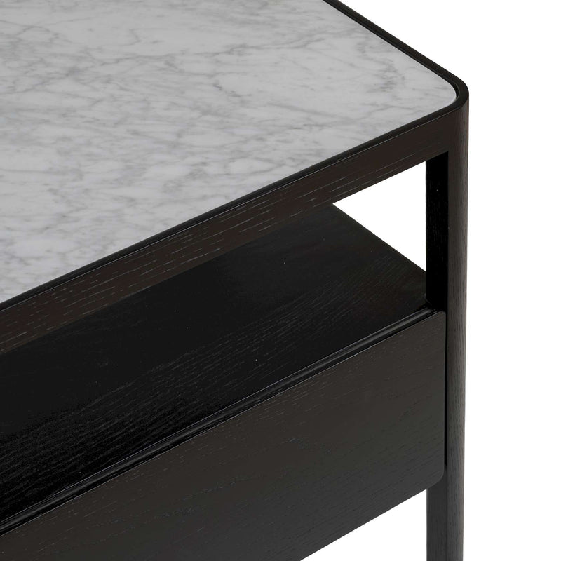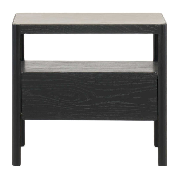An inversion of our Tye nightstand, bringing the stone element to the top, opening up space for a handy shelf underneath. This bedside table is designed with a twist on our popular Tye style, featuring a unique stone top that creates additional space for storage on the bottom shelf. Enhance your bedroom with this elegant and functional addition.