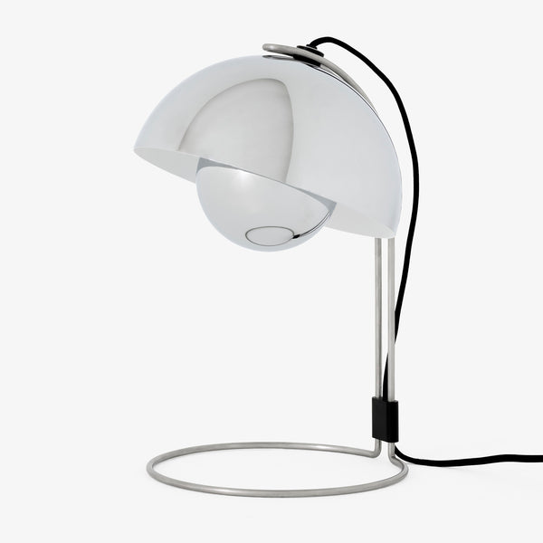 The VP4 model adapts the form of the iconic Flowerpot into a stylish table lamp. The petite proportions of the VP4 allow for easy placement without compromising the distinct character and aesthetic identity of the original design. Available in a striking range of finishes, the VP4 embodies the expressive visual language of Verner Panton and his affinity for intriguing forms.