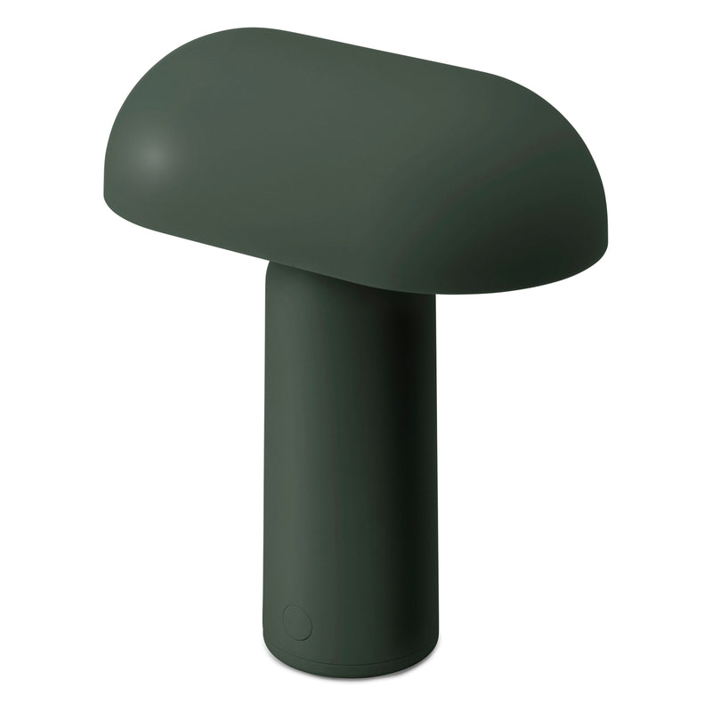As implied by its name, Porta is the first portable lamp in the lighting collection. Characterized by its rounded, organic design cues, the cylinder base and elongated dome shape of the lamp shade contribute to an aesthetic cohesiveness.