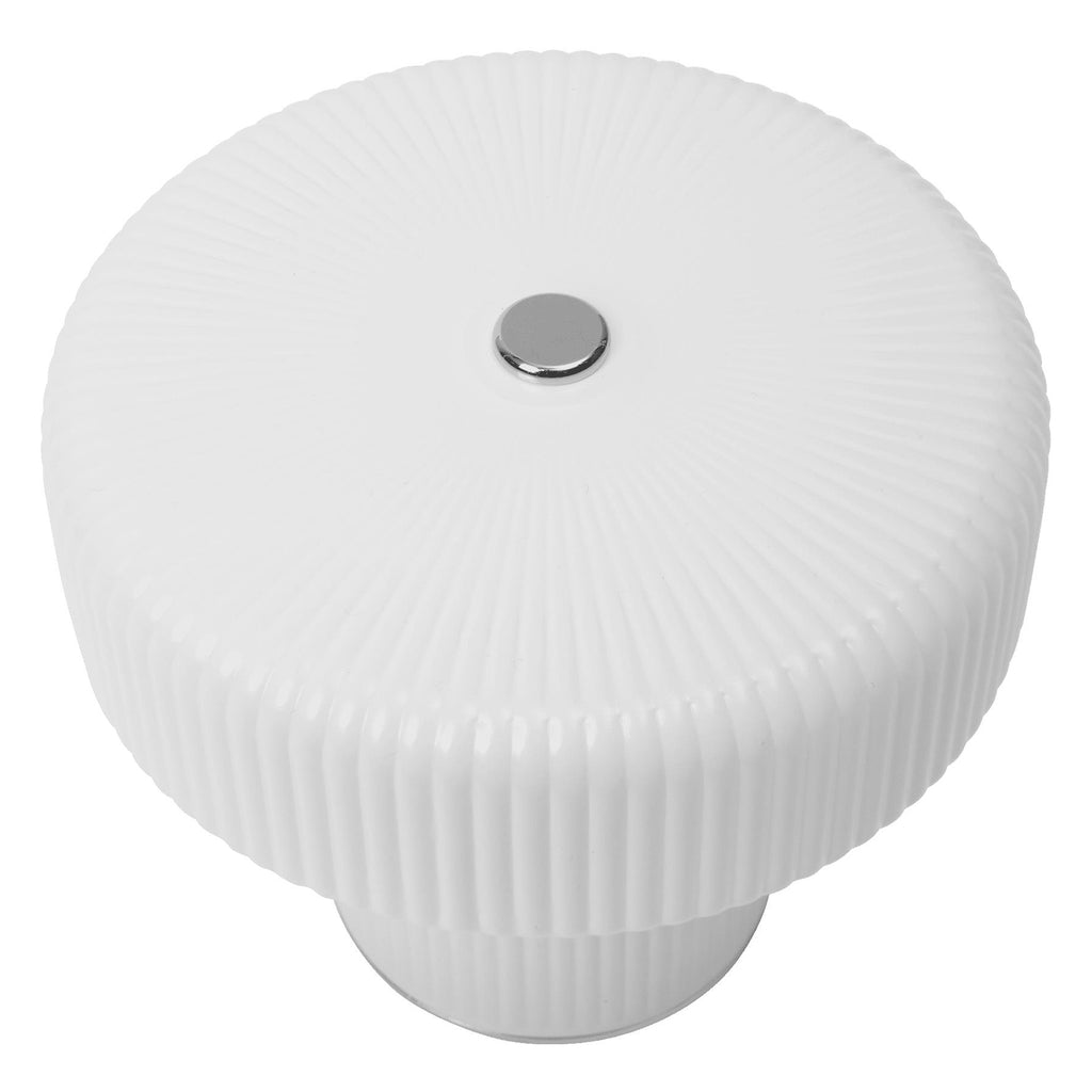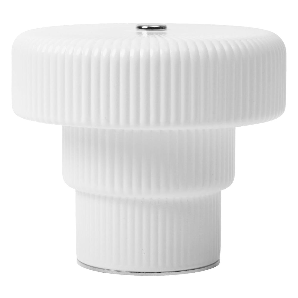Add a soft glow to your space with the Ripple Portable Lamp. Crafted from mouth-blown glass with a rippled surface and white opal finish, it casts a warm, diffused light. With three brightness levels, the compact design is perfect for intimate evenings or adding ambience to a table setting.
