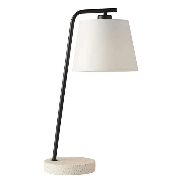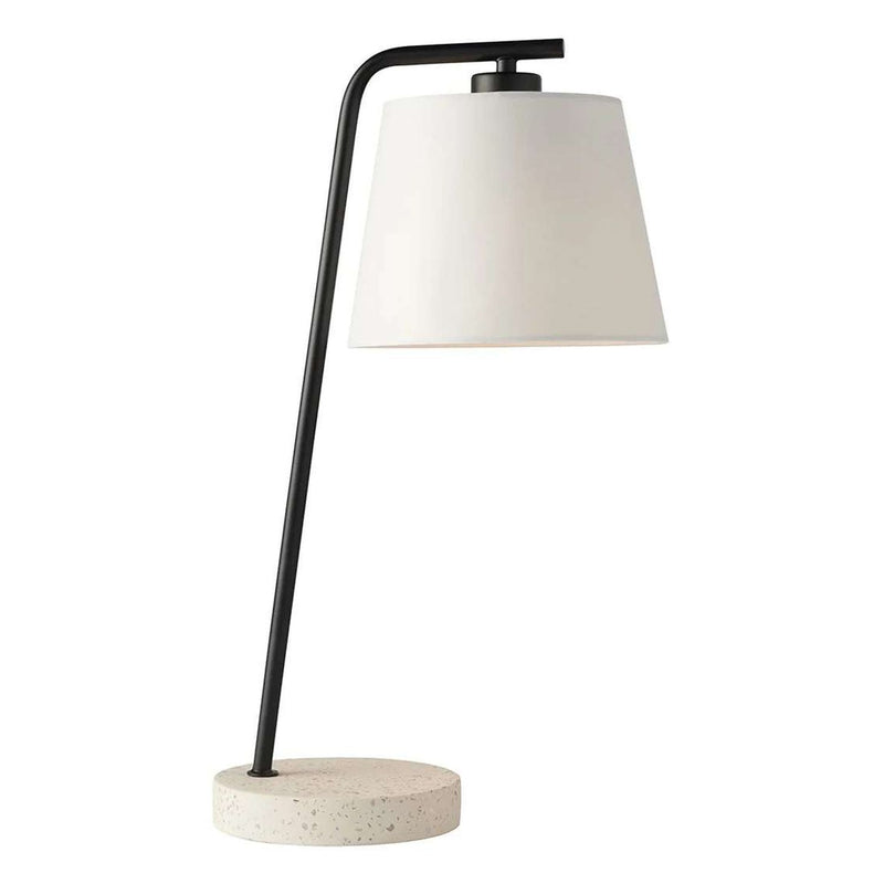 Expertly designed, the Sergio Desk Lamp combines Terrazzo and Satin Black metalware for a modern look. Its White Linen shade complements the warm hues of glass, stone, and marble in the Terrazzo. Illuminate any workspace with style and sophistication.