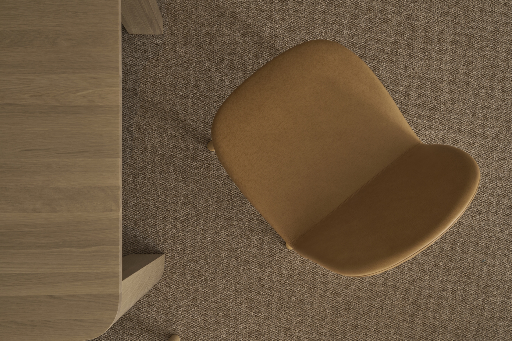 Com is an archetypal dining chair with sinuous curves and a pared-down aesthetic. The ergonomic structure is a gently formed plywood shell on solid oak cylindrical legs. Both give the impression of sturdiness and warm materials. It's a chair that's casual enough for the dining room, the study, or the bedroom.