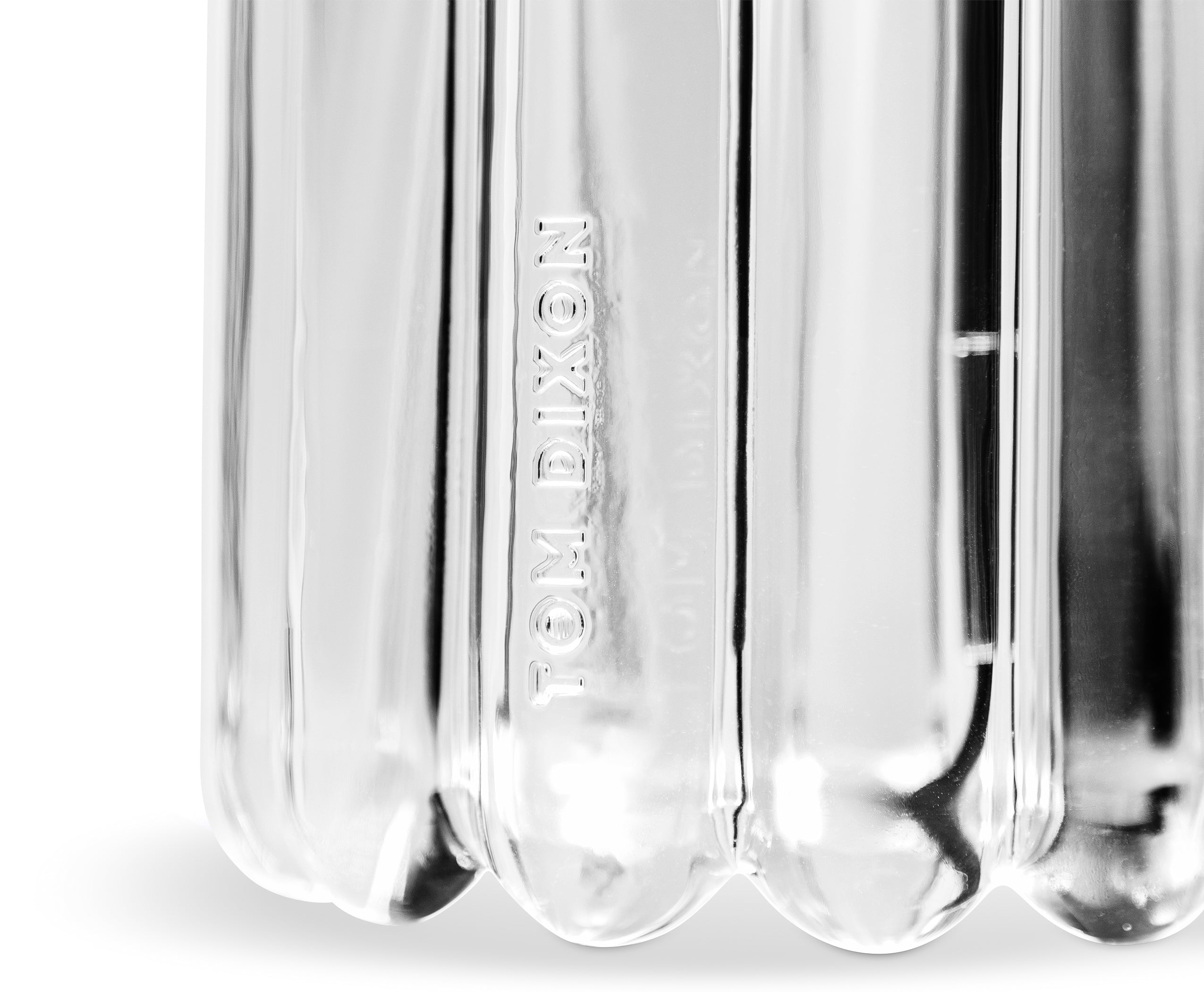 Press is a series of lights made from the thickest and most transparent glass with a satisfyingly rounded linear surface detail. This year, the table light joins the Press collection, a solid weight and timeless design which includes a metal dome cap that can be interchanged depending on the customer's colour preference - silver, gold and black colour options. The metal dome cap can be interchanged depending on the customer's colour preference - silver, gold and black caps are available.