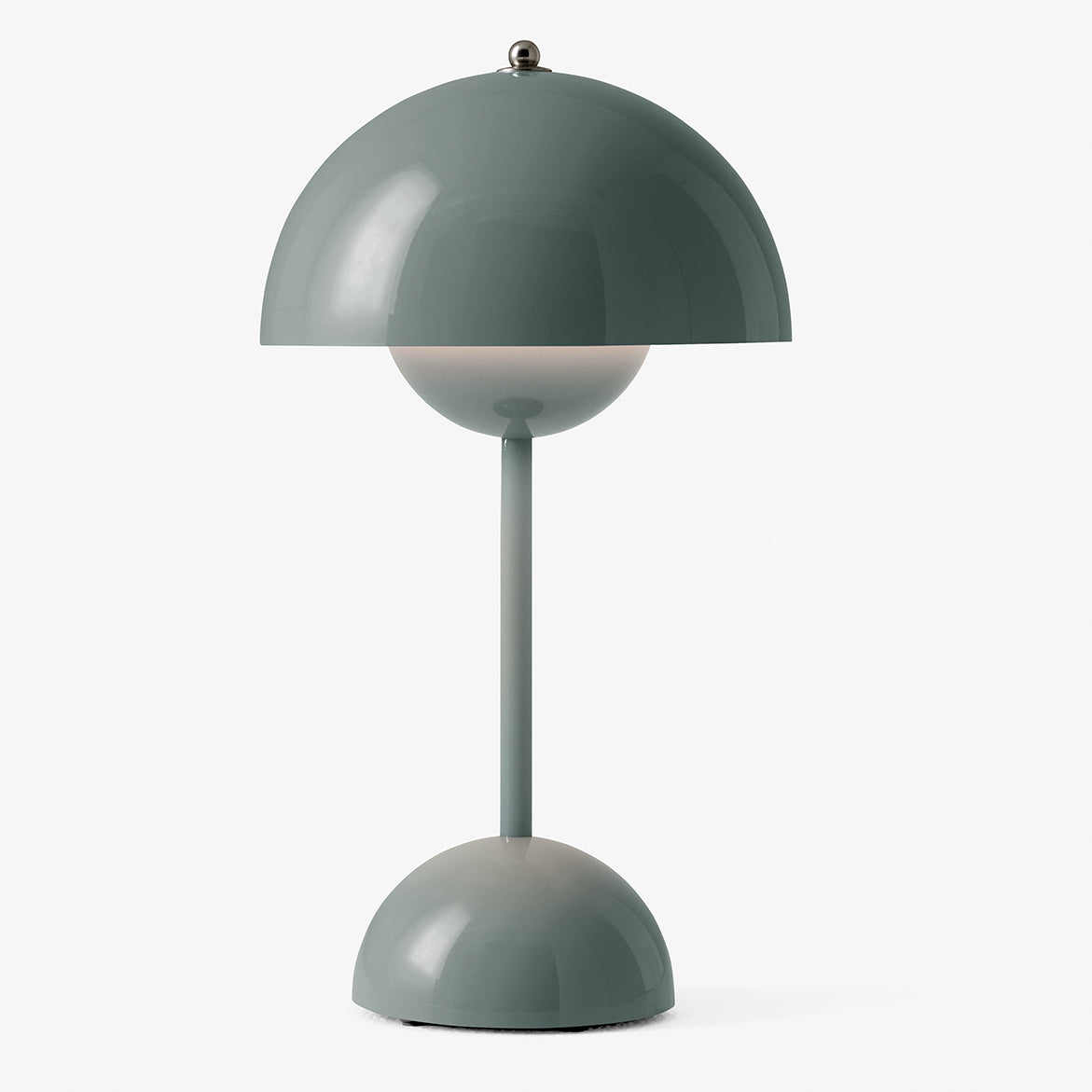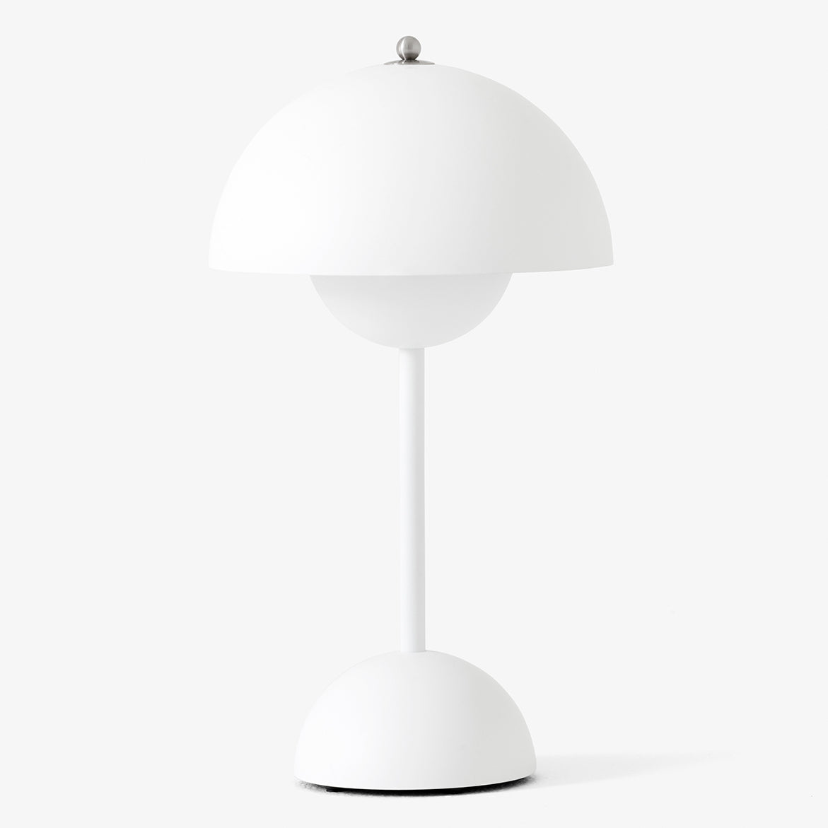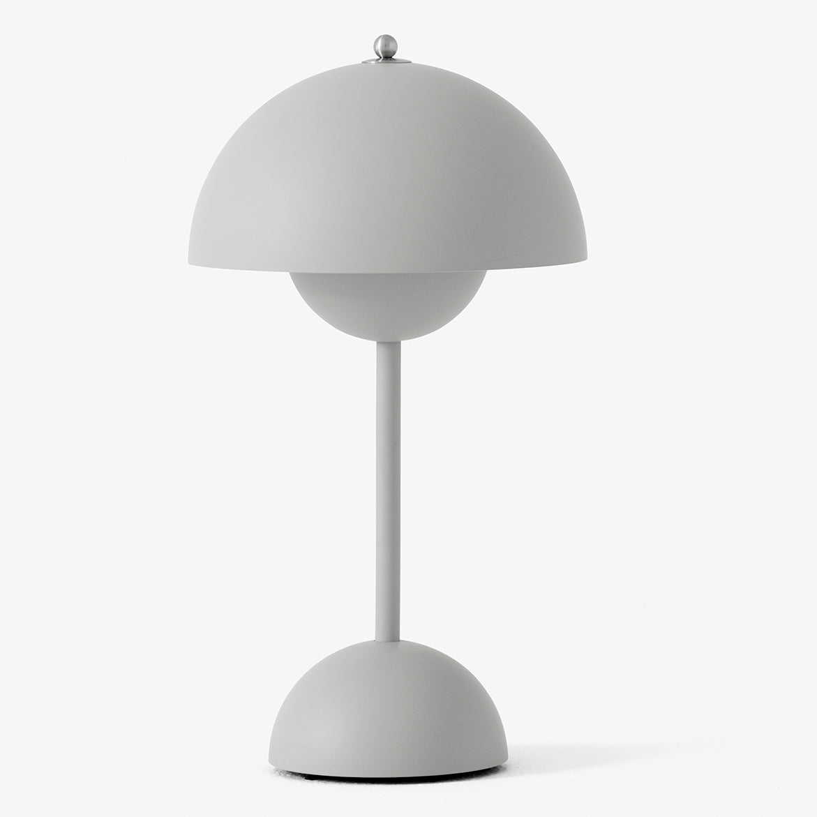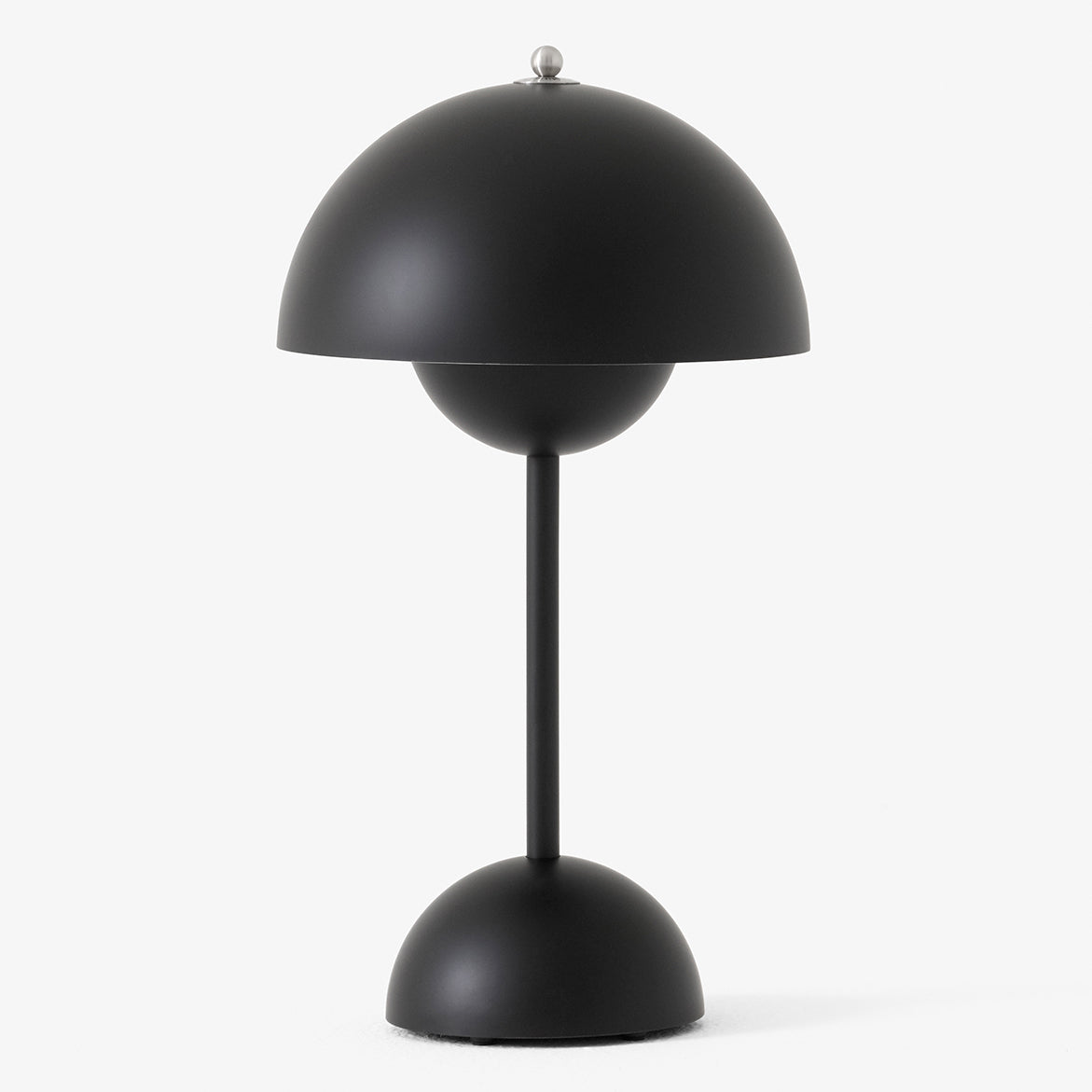 Reflecting the same iconic design as the Flowerpot table lamp, the petite proportions of the VP9 lamp have the added advantage of being mobile. The deliberately lightweight design and cordless feature allow the lamp to be easily moved from table to counter as needed.