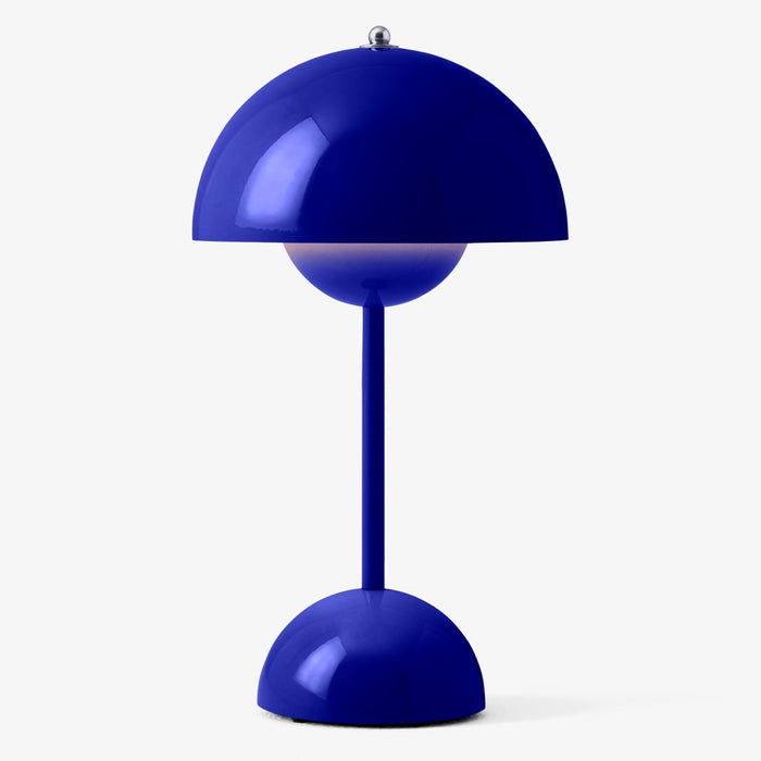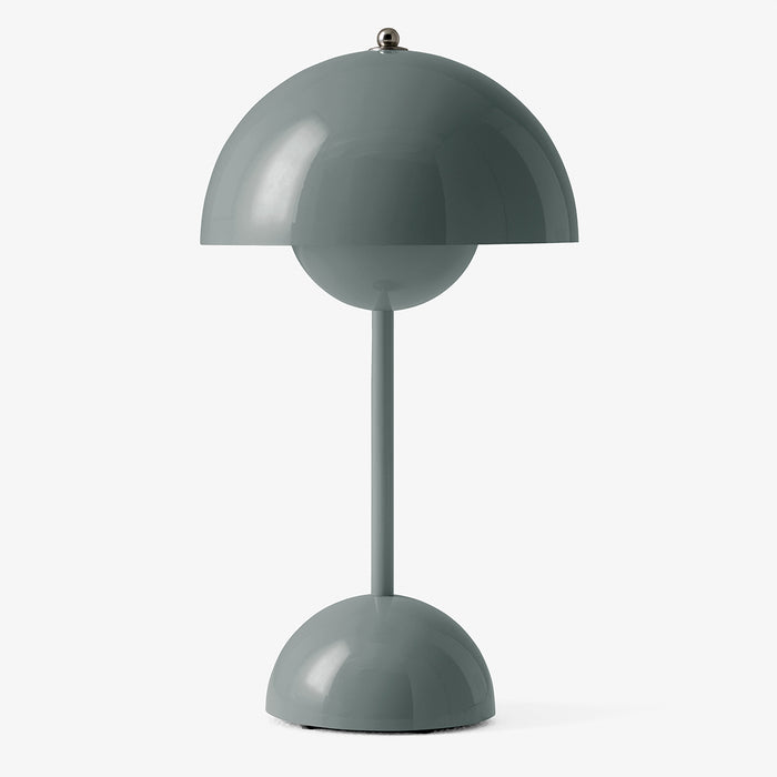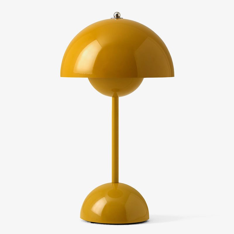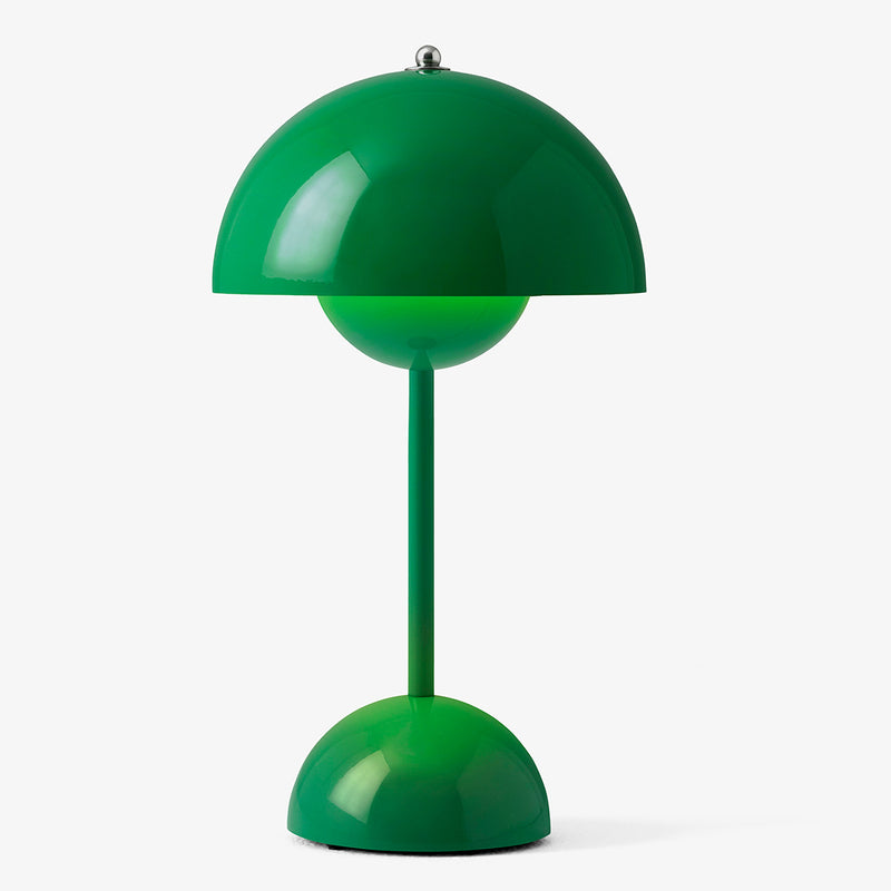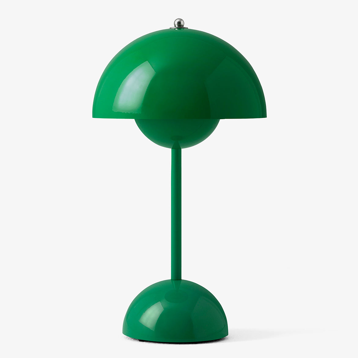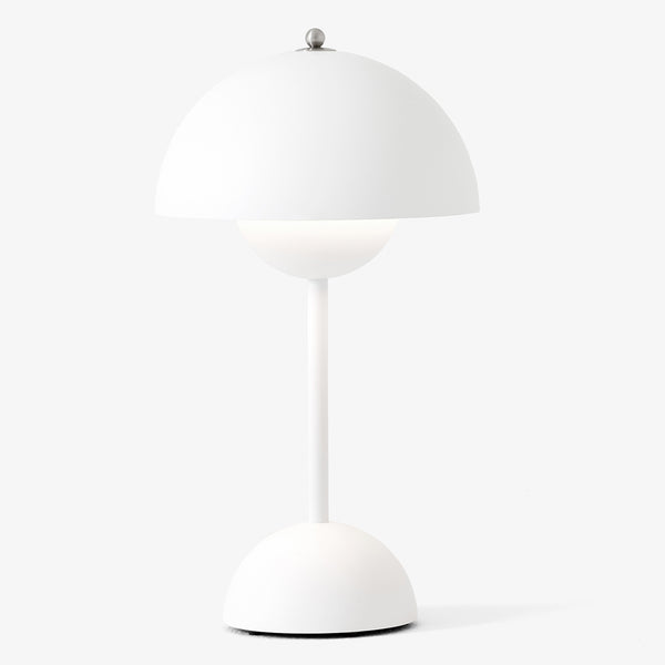 Reflecting the same iconic design as the Flowerpot table lamp, the petite proportions of the VP9 lamp have the added advantage of being mobile. The deliberately lightweight design and cordless feature allow the lamp to be easily moved from table to counter as needed.