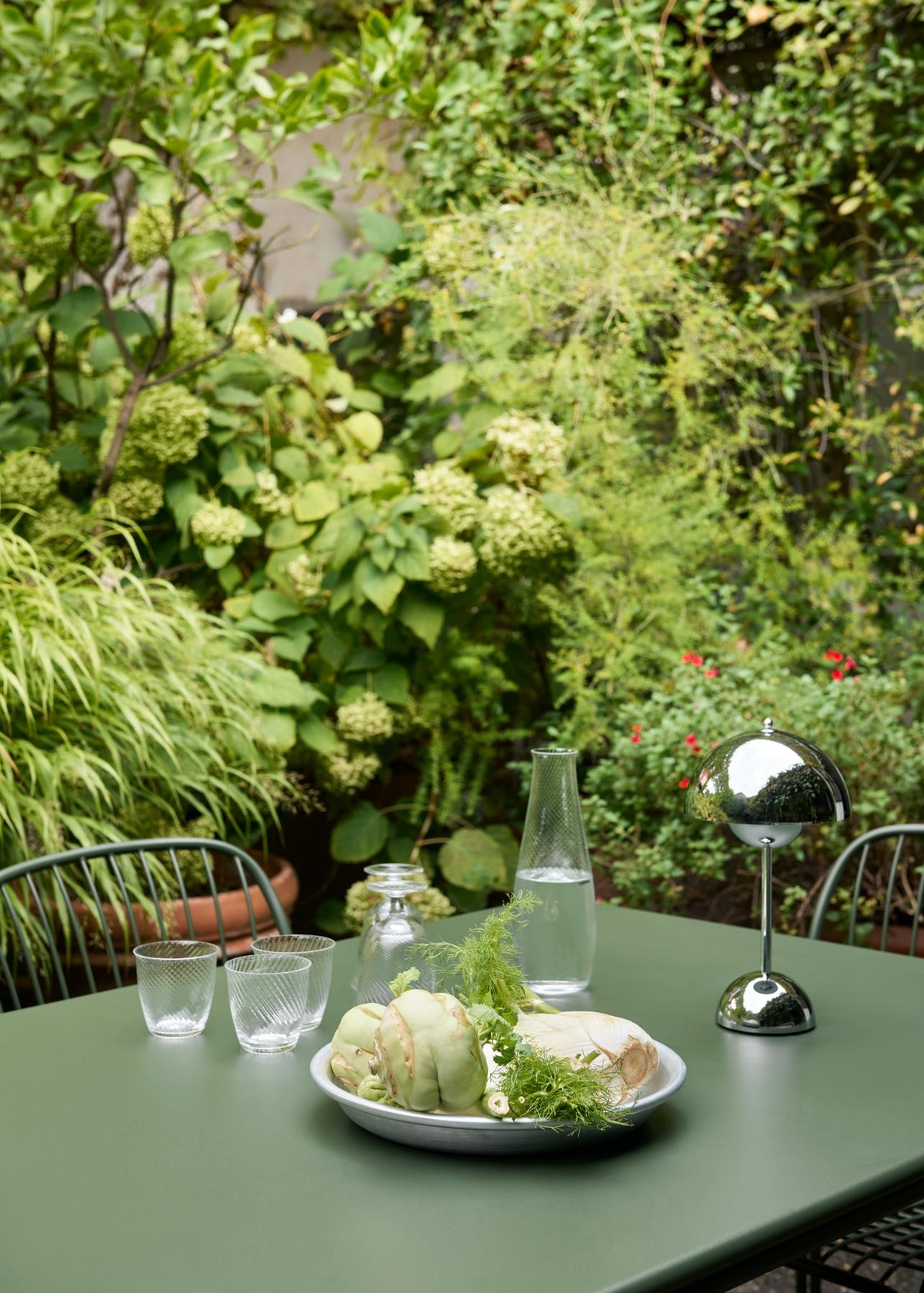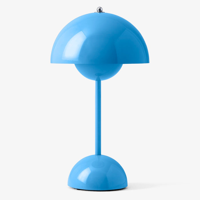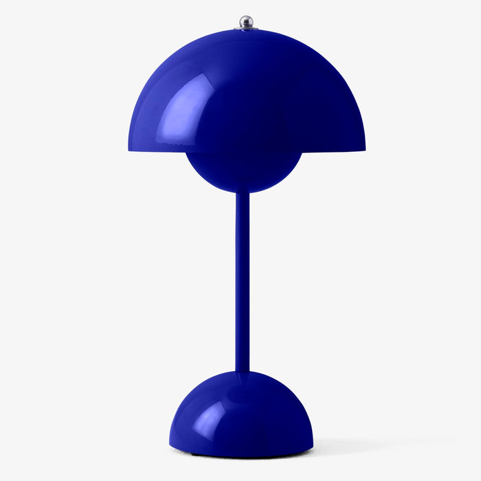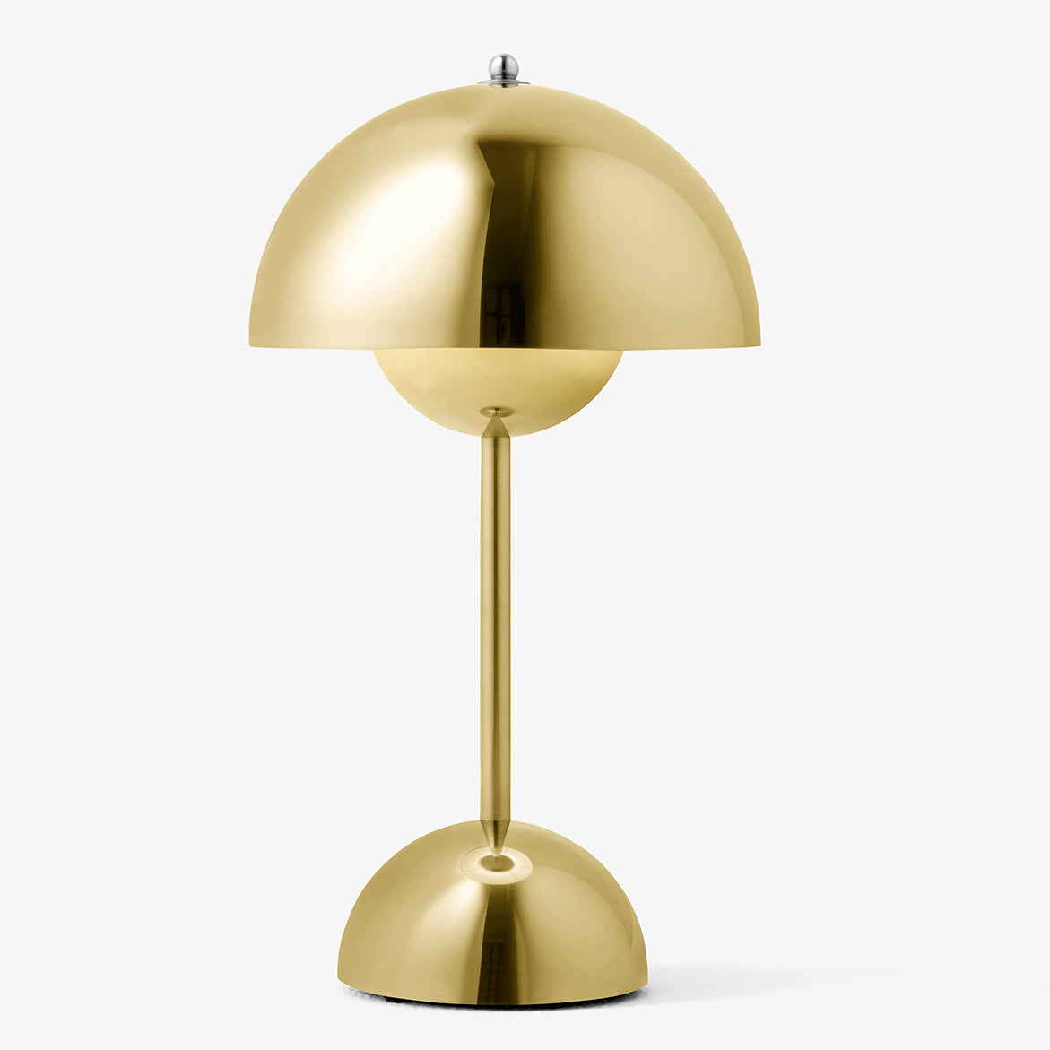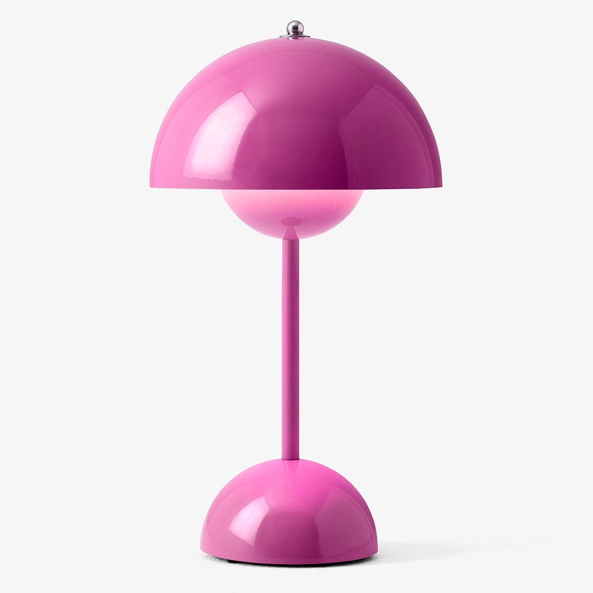 Reflecting the same iconic design as the Flowerpot table lamp, the petite proportions of the VP9 lamp have the added advantage of being mobile. The deliberately lightweight design and cordless feature allow the lamp to be easily moved from table to counter as needed.