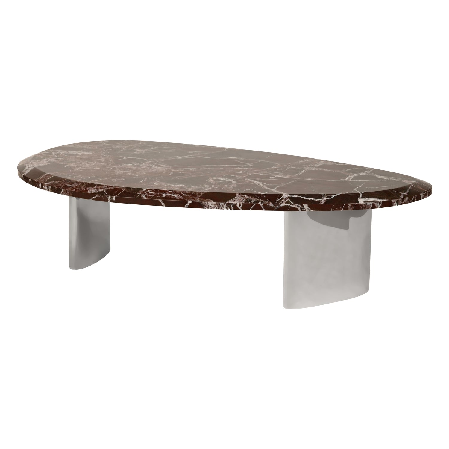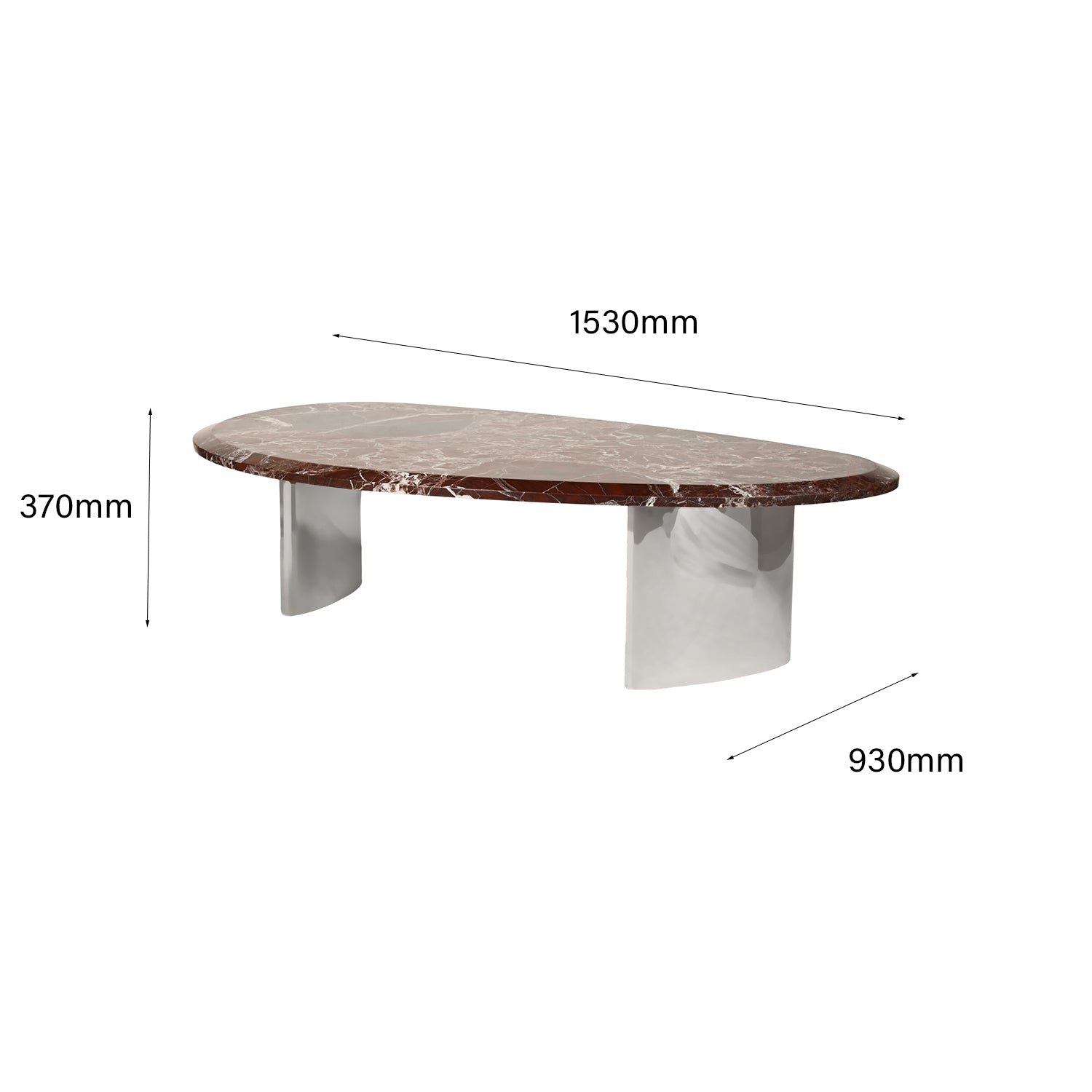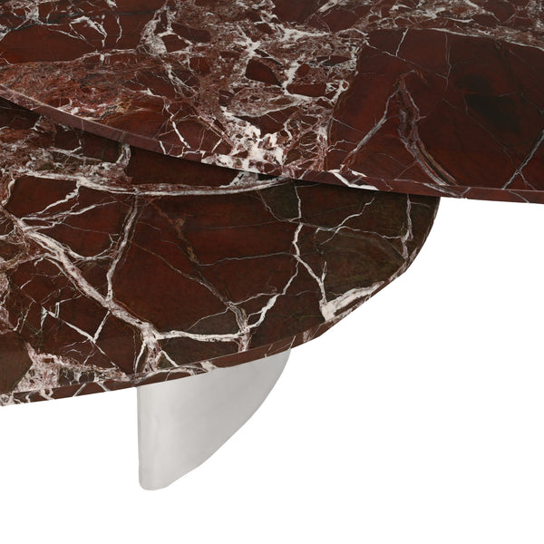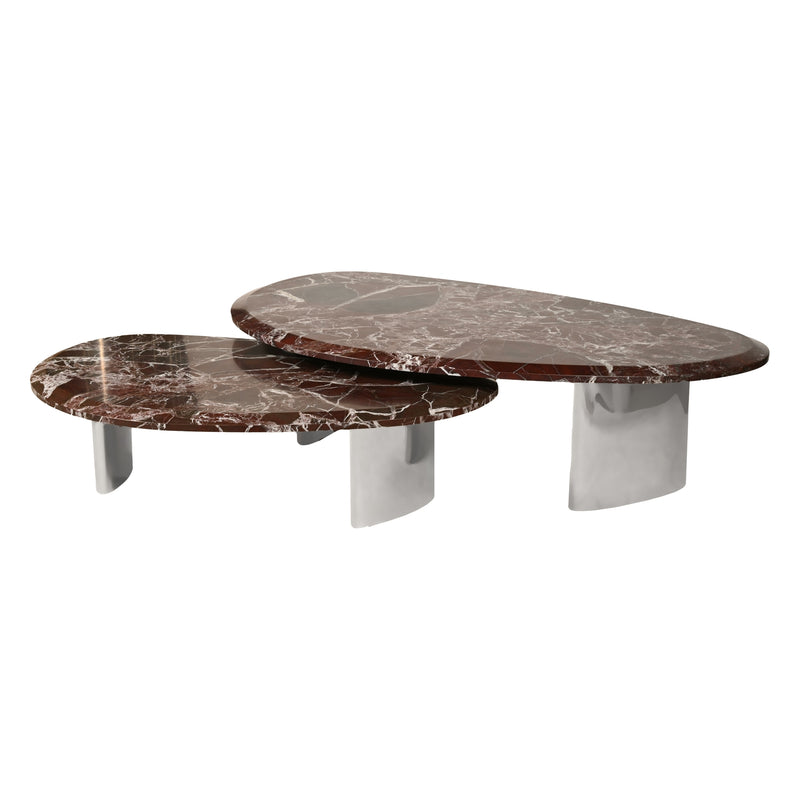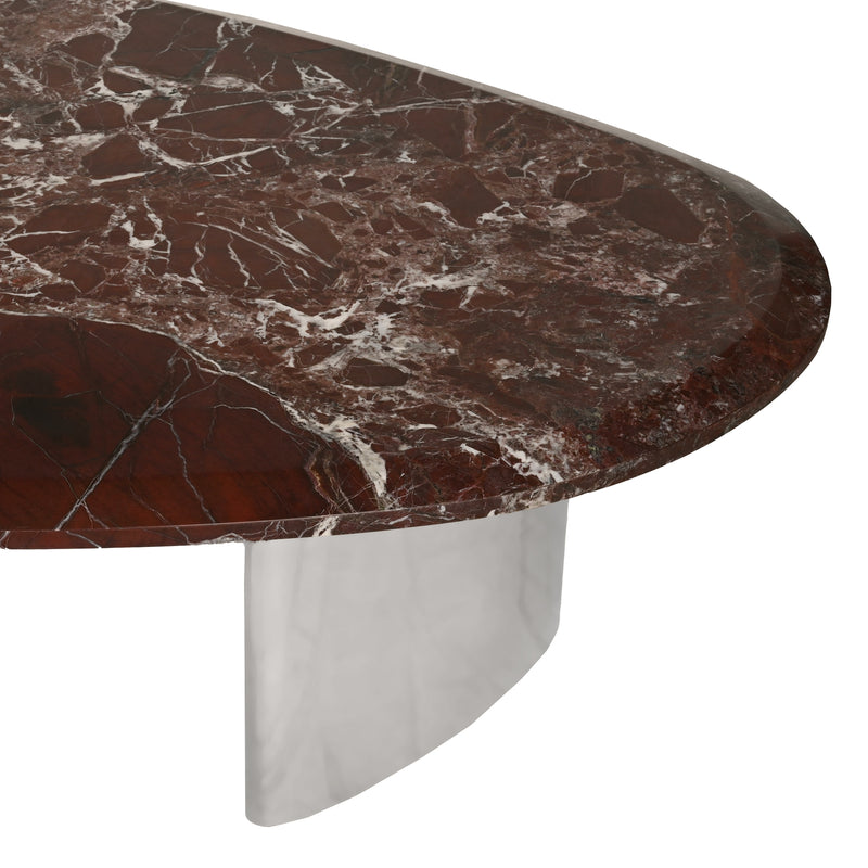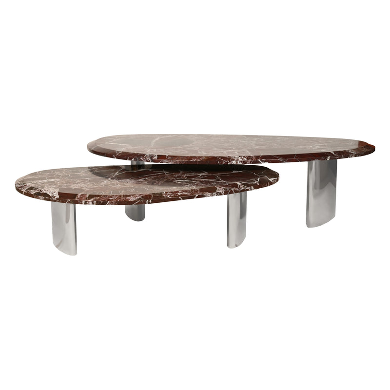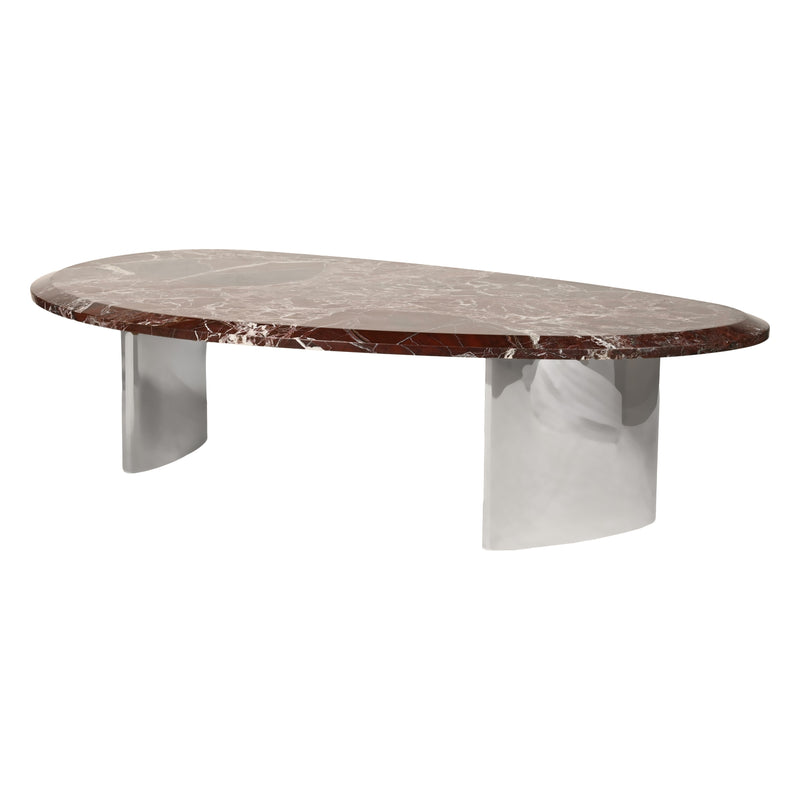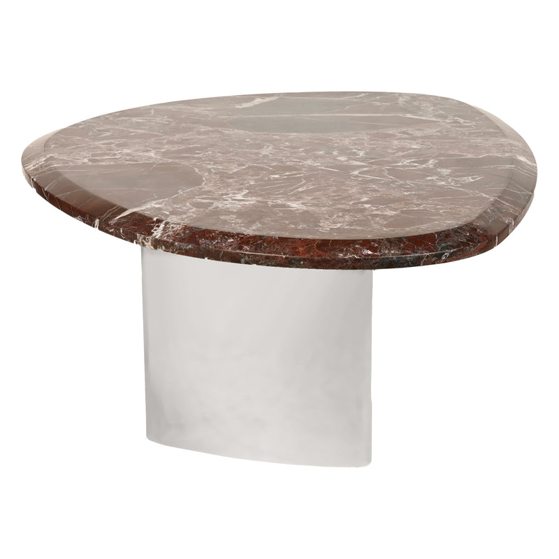 The Dwell Coffee Table makes a striking centrepiece, pairing a richly toned red marble top with sleek stainless steel legs for a refined, contemporary feel. The natural stone surface brings depth and character, while the polished base adds strength and balance, creating a design that is both timeless and durable. Style the high and low together for a cohesive nesting set that elevates any living space.