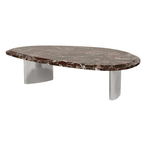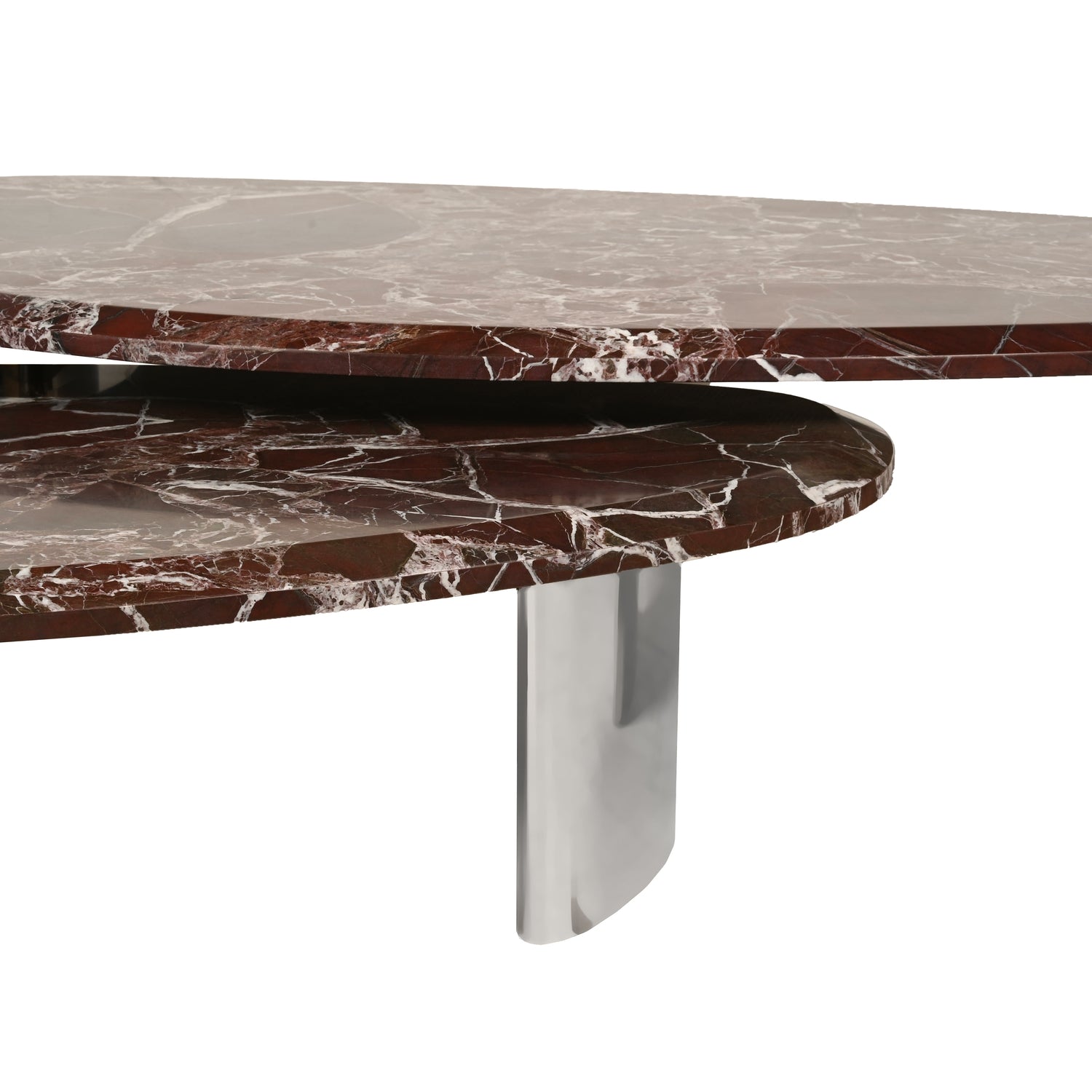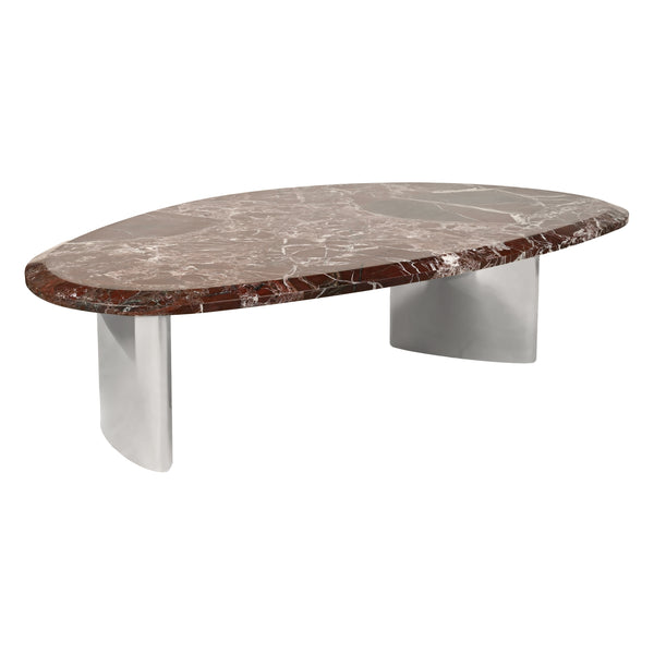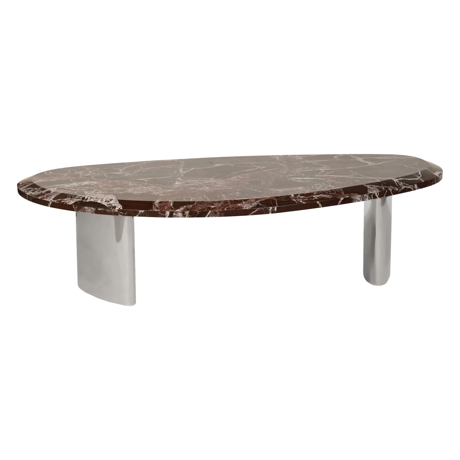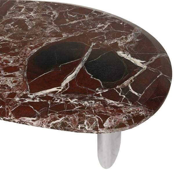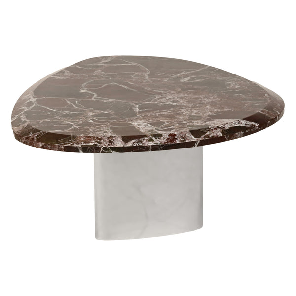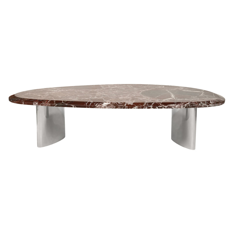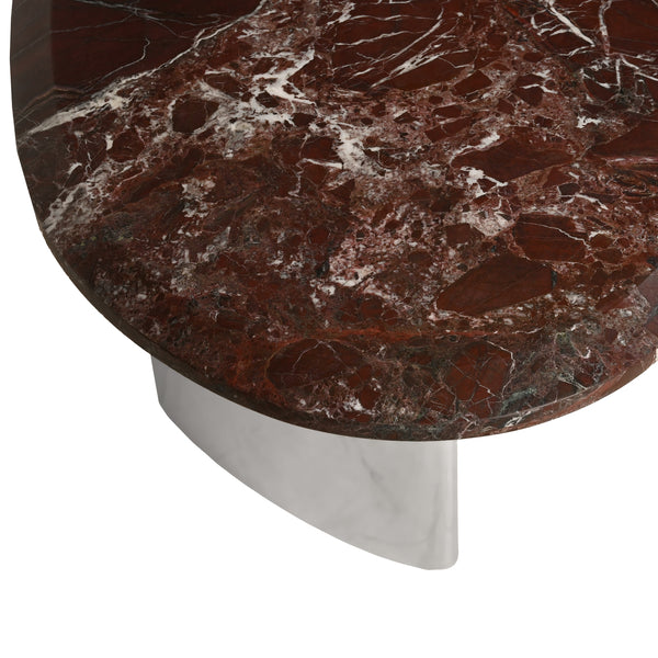 The Dwell Coffee Table makes a striking centrepiece, pairing a richly toned red marble top with sleek stainless steel legs for a refined, contemporary feel. The natural stone surface brings depth and character, while the polished base adds strength and balance, creating a design that is both timeless and durable. Style the high and low together for a cohesive nesting set that elevates any living space.