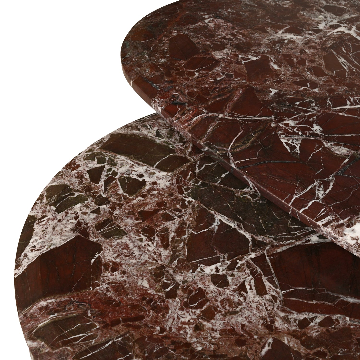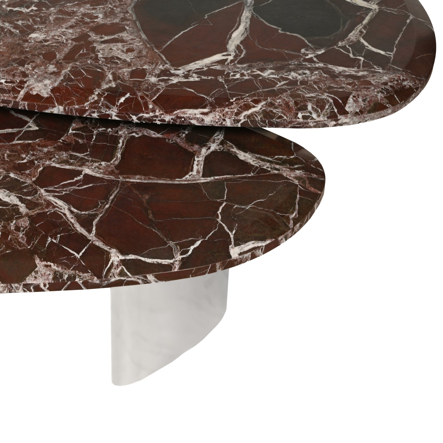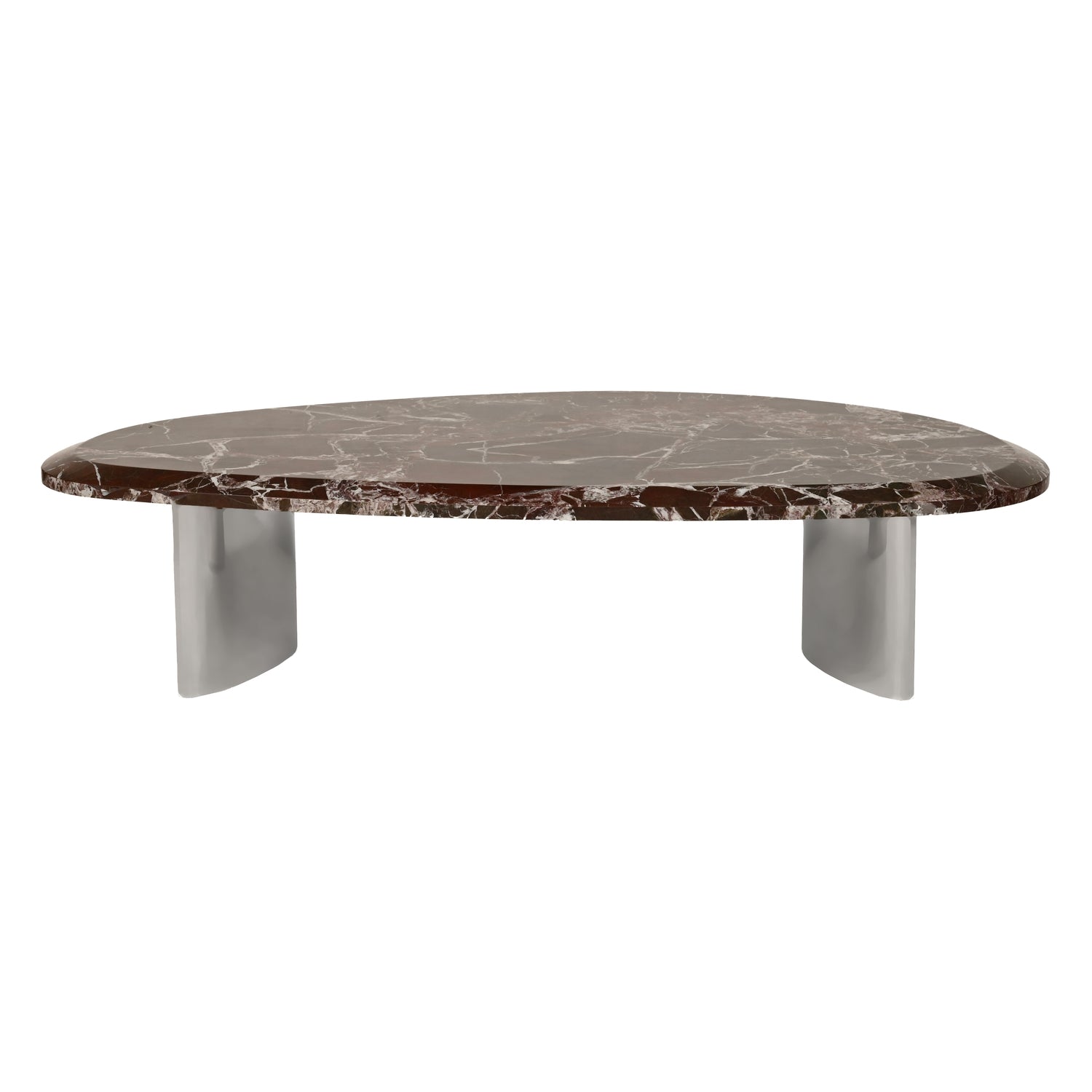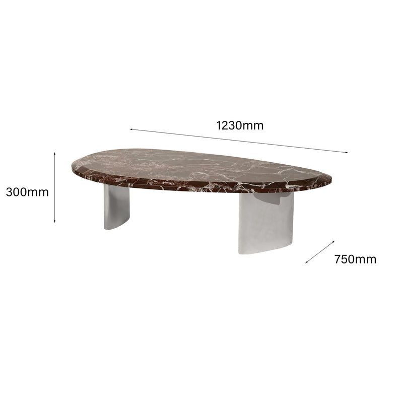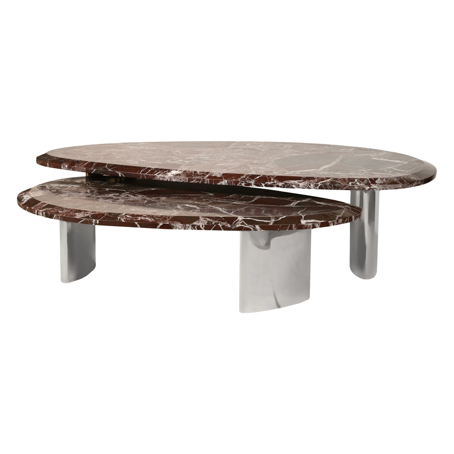 The Dwell Coffee Table makes a striking centrepiece, pairing a richly toned red marble top with sleek stainless steel legs for a refined, contemporary feel. The natural stone surface brings depth and character, while the polished base adds strength and balance, creating a design that is both timeless and durable. Style the high and low together for a cohesive nesting set that elevates any living space.