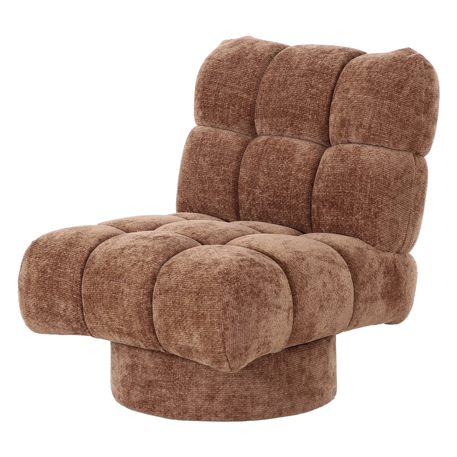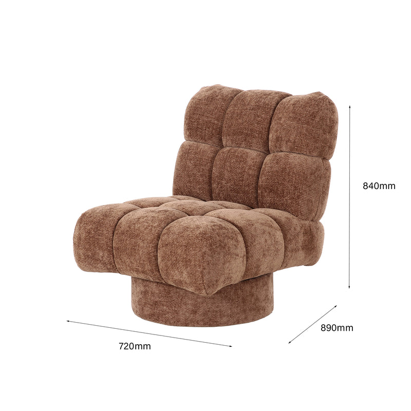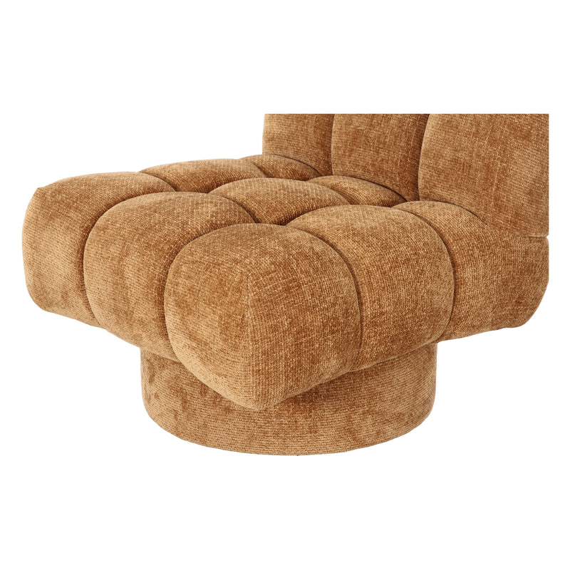Leno is quietly playful, defined by its sculptural, tufted form and compact footprint. The rounded profile creates a sense of comfort without excess, making it ideal for smaller spaces or layered seating arrangements. Upholstered for softness and visual texture, it works beautifully as an accent chair that still feels substantial and considered.