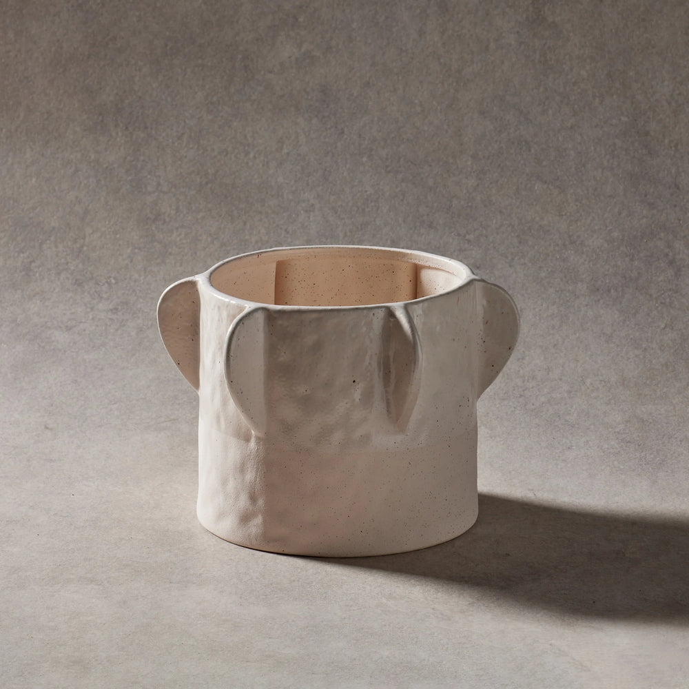 Introducing the Clementa Pot, a meticulously handcrafted ceramic marvel adorned with creamy clay tones. This sculptural vessel boasts petal-shaped protrusions that create a three-dimensional masterpiece, adding a unique and tactile dimension to its surface. Crafted with precision, the Clementa Pot stands as a testament to artisanal expertise, showcasing an organic yet refined aesthetic.