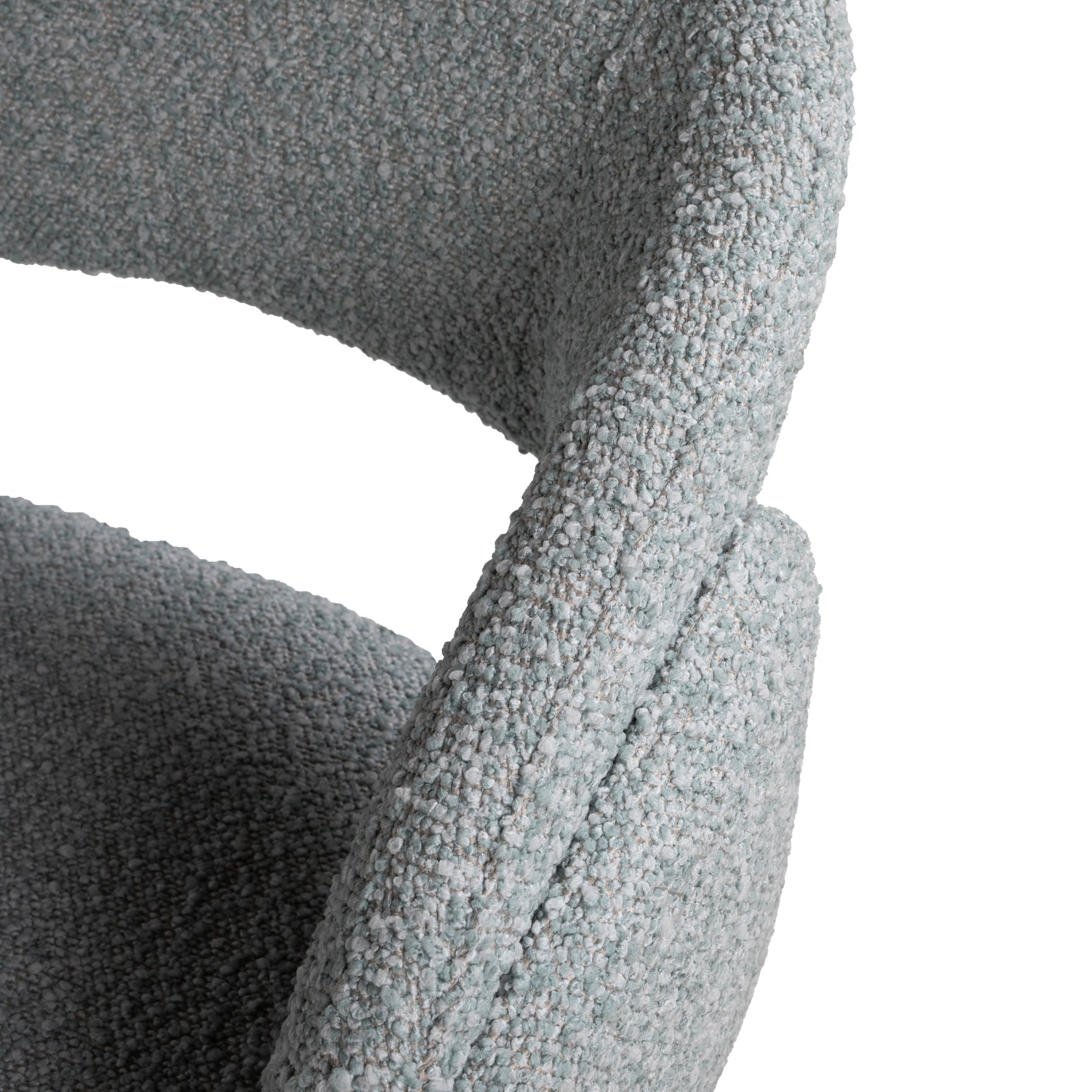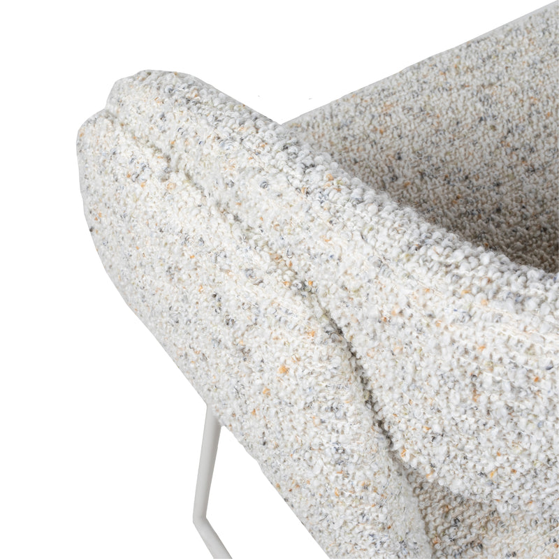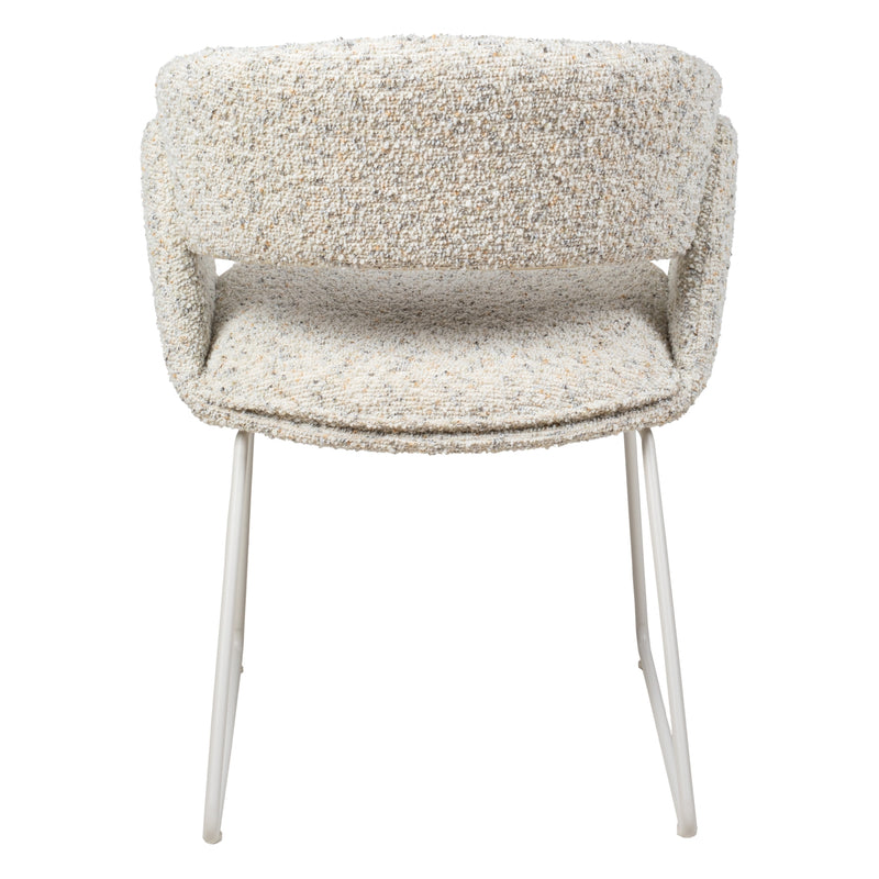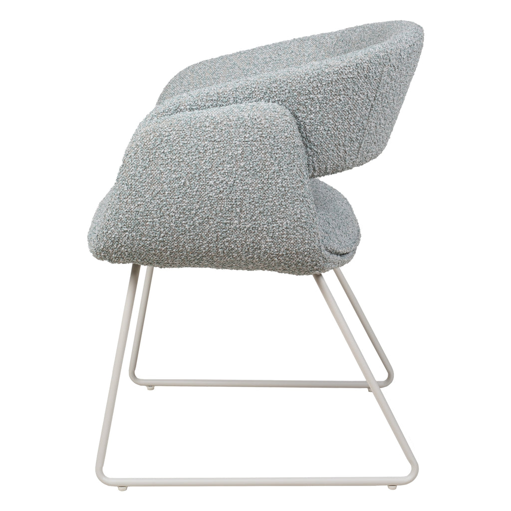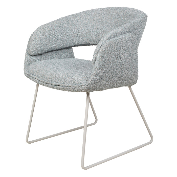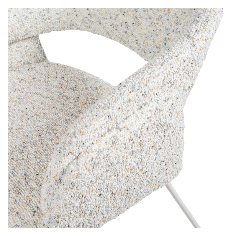 The Polar Arm Chair blends modern design with exceptional comfort. Its curved, wraparound backrest and integrated armrests provide a supportive and inviting feel. The plush cushioned seat enhances relaxation, making it perfect for extended seating. A sleek metal sled base adds stability while maintaining a light, airy look. Ideal for living rooms, offices, or stylish dining spaces.